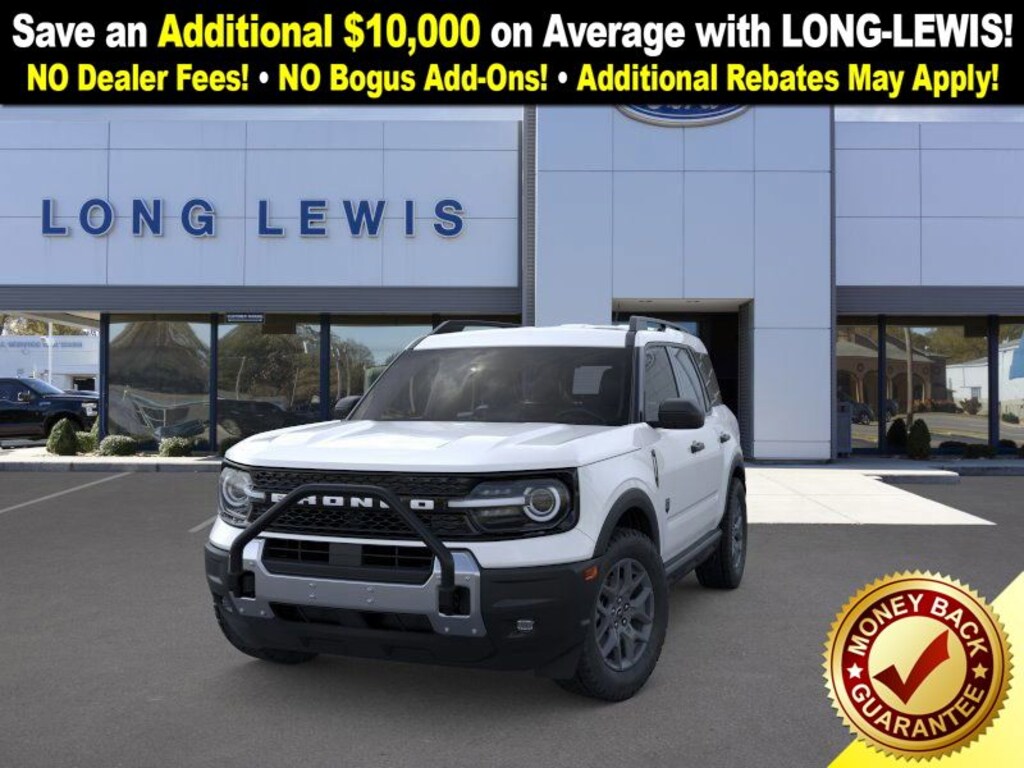 Oxford White 2025 Ford Bronco Sport Big Bend NFT 4WD 8-Speed Automatic 1.5L EcoBoost 110V/400W AC Power Outlet, 2nd Row Carpeted Seatback, 4-Wheel Disc Brakes, 6 Speakers, ABS brakes, Air Conditioning, Alloy wheels, AM/FM radio: SiriusXM, AM/FM Stereo, Auto High-beam Headlights, Automatic temperature control, Auxiliary Switches & Wiring, Black Diamond Off-Road Package, Brake assist, Brush Guard, Cargo Management System (Shelf/Divider/Table), Cargo Mat, Class II Trailer Tow Pack w/Trailer Sway Control, Cloth w/Easy-to-Clean Front Bucket Seats, Compass, Convenience Package, Delay-off headlights, Driver door bin, Driver vanity mirror, Dual front impact airbags, Dual front side impact airbags, Electronic Stability Control, Emergency communication system: SYNC 4 911 Assist, Fender Tie Downs, Four wheel independent suspension, Front & Rear Black Bumpers, Front anti-roll bar, Front Bucket Seats, Front Center Armrest, Front Driver/Passenger Seat Back Map Pockets, Front License Plate Bracket, Front reading lights, Fully automatic headlights, Heated 8-Way Power Driver's Seat, Heated door mirrors, Illuminated entry, Interior Grab Handle, Knee airbag, LED Fog Lamps, Low tire pressure warning, Occupant sensing airbag, Outside temperature display, Overhead airbag, Overhead console, Panic alarm, Passenger door bin, Passenger vanity mirror, Power door mirrors, Power steering, Power windows, Premium Wrapped Steering Wheel, Radio data system, Rear anti-roll bar, Rear Parking Sensors, Rear reading lights, Rear seat center armrest, Rear window defroster, Rear window wiper, Recovery Hooks, Remote keyless entry, Security system, SiriusXM, Speed control, Speed-sensing steering, Speed-Sensitive Wipers, Split folding rear seat, Steering wheel mounted audio controls, SYNC 4 w/Enhanced Voice Recognition, Tachometer, Telescoping steering wheel, Tilt steering wheel, Traction control, Trip computer, Universal Garage Door Opener (UGDO), Variably intermittent wipers, Wheels: 17" Carbonized Gray Painted Aluminum, Wheels: 17" Carbonized Gray-Painted Aluminum.