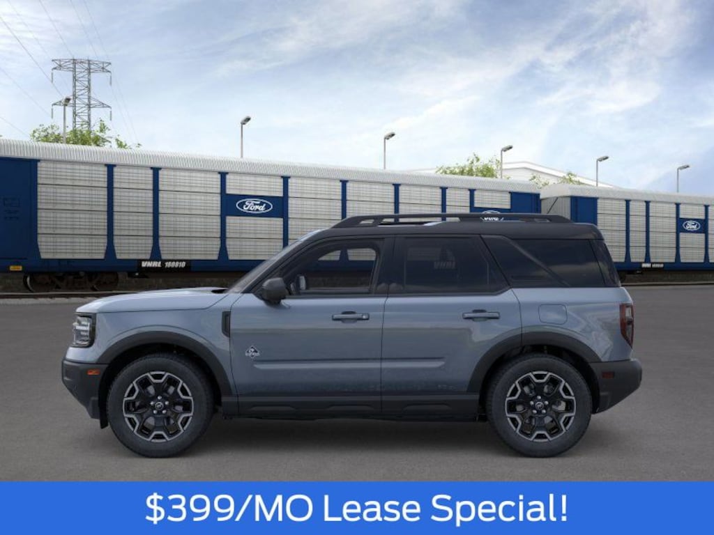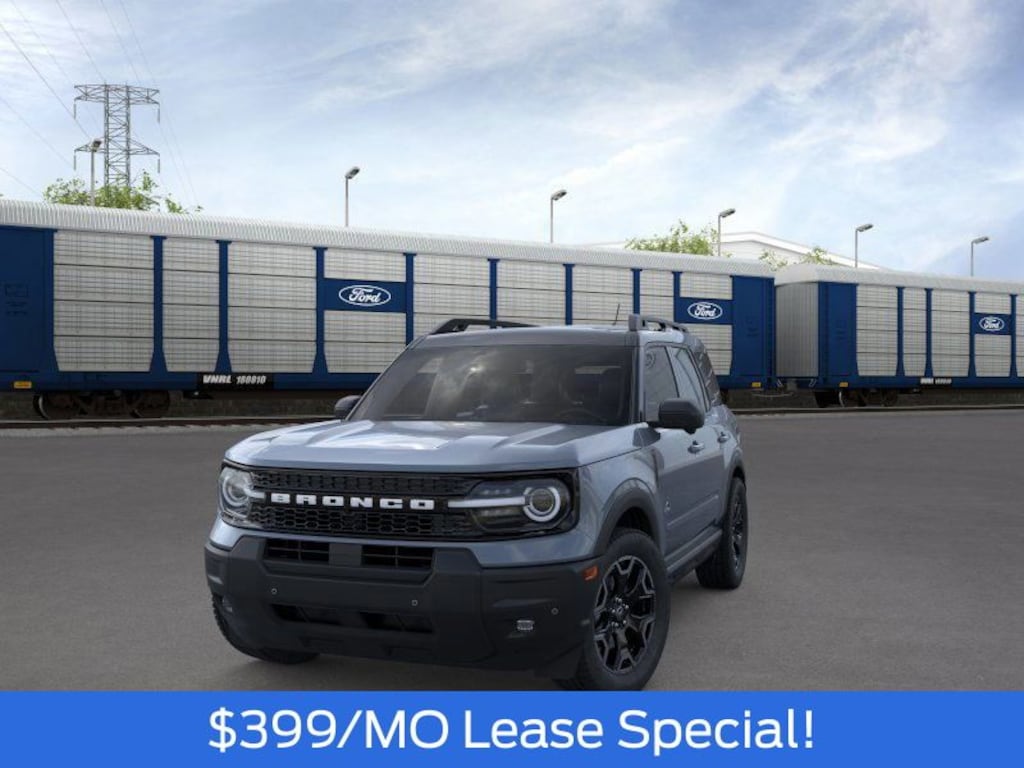 Azure Gray Metallic Tri-Coat 2025 Ford Bronco Sport Outer Banks NFT 4WD 8-Speed Automatic 1.5L EcoBoost 360-Degree Camera w/Trail & Split View, 4-Wheel Disc Brakes, 6 Speakers, ABS brakes, Air Conditioning, Alloy wheels, AM/FM radio: SiriusXM, AM/FM Stereo, Auto High-beam Headlights, Auto-dimming Rear-View mirror, Automatic temperature control, B&O Sound System by Bang & Olufsen, Brake assist, Compass, Connected Navigation, Delay-off headlights, Driver door bin, Driver vanity mirror, Dual front impact airbags, Dual front side impact airbags, Electronic Stability Control, Emergency communication system: SYNC 4 911 Assist, Four wheel independent suspension, Front anti-roll bar, Front Bucket Seats, Front Center Armrest, Front Driver/Passenger Seat Back Map Pockets, Front dual zone A/C, Front fog lights, Front License Plate Bracket, Front Parking Sensors, Front reading lights, Fully automatic headlights, Garage door transmitter, HD Radio, Heated door mirrors, Heated front seats, Heated steering wheel, Illuminated entry, Knee airbag, Low tire pressure warning, Memory seat, Occupant sensing airbag, Outer Banks Tech Package+, Outside temperature display, Overhead airbag, Overhead console, Panic alarm, Passenger door bin, Passenger vanity mirror, Power door mirrors, Power driver seat, Power Moonroof, Power passenger seat, Power steering, Power windows, Premium Trimmed Front Bucket Seats w/Ebony/Roast, Radio data system, Rain sensing wipers, Rear anti-roll bar, Rear Parking Sensors, Rear reading lights, Rear seat center armrest, Rear window defroster, Rear window wiper, Remote keyless entry, Reverse Brake Assist, Security system, SiriusXM, Speed control, Speed-sensing steering, Speed-Sensitive Wipers, Split folding rear seat, Steering wheel mounted audio controls, SYNC 4 w/Enhanced Voice Recognition, Tachometer, Telescoping steering wheel, Tilt steering wheel, Traction control, Trip computer, Variably intermittent wipers, Wheels: 18" Ebony Black-Painted Aluminum.