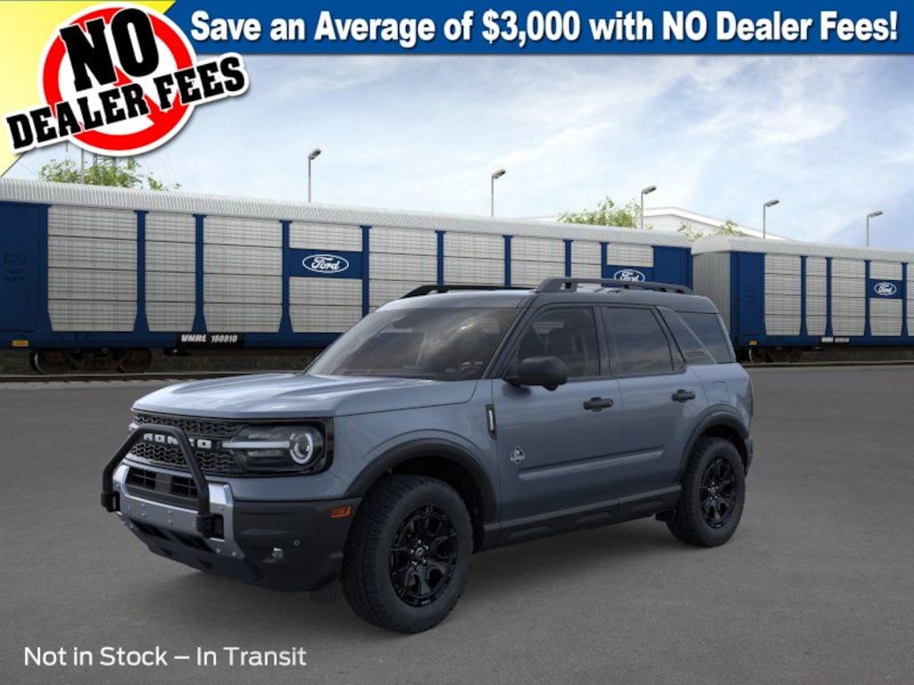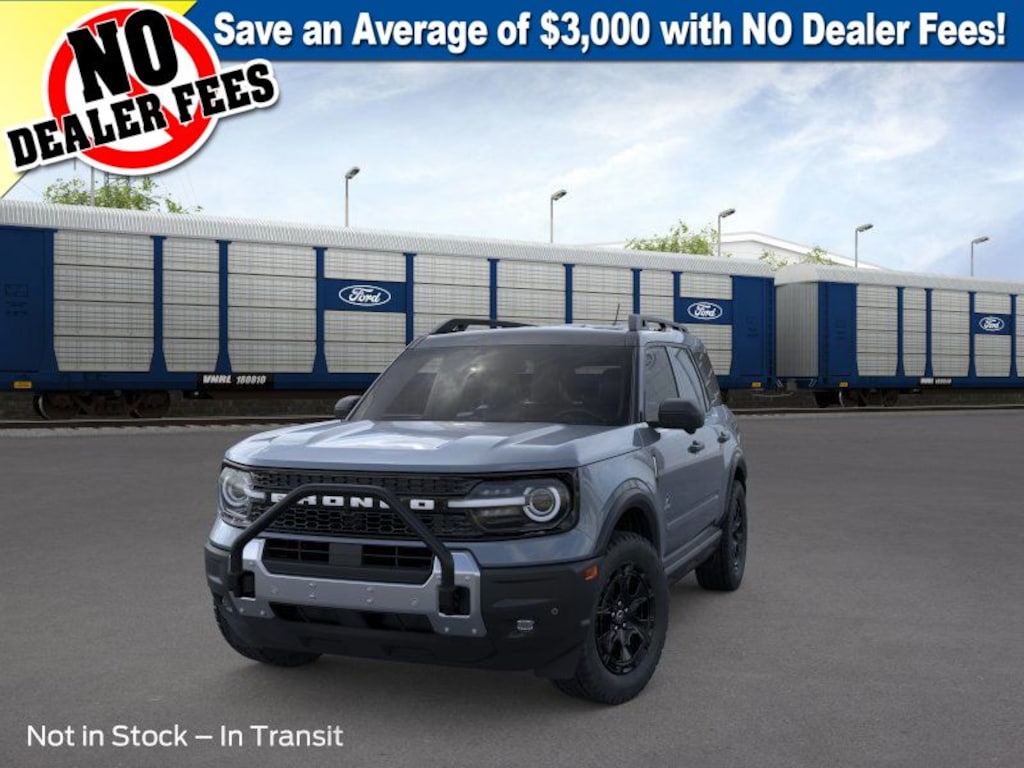Dealer Discount of $2,485 off MSRP Azure Gray Metallic Tri-Coat 2025 Ford Bronco Sport Outer Banks 4WD 8-Speed Automatic 1.5L EcoBoost 110V/400W AC Power Outlet, 2nd Row Carpeted Seatback, 360-Degree Camera w/Trail & Split View, 4-Wheel Disc Brakes, 6 Speakers, ABS brakes, Air Conditioning, Alloy wheels, AM/FM radio: SiriusXM, AM/FM Stereo, Auto High-beam Headlights, Auto-dimming Rear-View mirror, Automatic temperature control, Auxiliary Switches & Wiring, B&O Sound System by Bang & Olufsen, Brake assist, Brush Guard, Class II Trailer Tow Pack w/Trailer Sway Control, Compass, Connected Navigation, Delay-off headlights, Driver door bin, Driver vanity mirror, Dual front impact airbags, Dual front side impact airbags, Electronic Stability Control, Emergency communication system: SYNC 4 911 Assist, Fender Tie Downs, Four wheel independent suspension, Front & Rear Black Bumpers, Front anti-roll bar, Front Bucket Seats, Front Center Armrest, Front Driver/Passenger Seat Back Map Pockets, Front dual zone A/C, Front fog lights, Front License Plate Bracket, Front Parking Sensors, Front reading lights, Fully automatic headlights, Garage door transmitter, HD Radio, Heated door mirrors, Heated front seats, Heated steering wheel, High Clearance Fender Flares, HOSS 2.0 Off-Road Suspension, Illuminated entry, Interior Grab Handle, Knee airbag, Low tire pressure warning, Memory seat, Occupant sensing airbag, Outer Banks Tech Package+, Outside temperature display, Overhead airbag, Overhead console, Panic alarm, Passenger door bin, Passenger vanity mirror, Power door mirrors, Power driver seat, Power passenger seat, Power steering, Power windows, Premium Trimmed Front Bucket Seats w/Ebony/Roast, Radio data system, Rain sensing wipers, Rear anti-roll bar, Rear Parking Sensors, Rear reading lights, Rear seat center armrest, Rear window defroster, Rear window wiper, Recovery Hooks, Remote keyless entry, Reverse Brake Assist, Sasquatch Outer Banks Package, Security system, SiriusXM, Speed control, Speed-sensing steering, Speed-Sensitive Wipers, Split folding rear seat, Steering wheel mounted audio controls, SYNC 4 w/Enhanced Voice Recognition, Tachometer, Telescoping steering wheel, Tilt steering wheel, Traction control, Trail Control for Off-Road, Trip computer, Variably intermittent wipers, Wheels: 17" Ebony Black-Painted Aluminum, Wheels: 18" Ebony Black-Painted Aluminum.