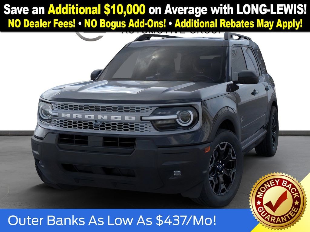 Dealer Discount of $1,955 off MSRP Priced below KBB Fair Purchase Price! Shadow Black 2025 Ford Bronco Sport Outer Banks NFT 4WD 8-Speed Automatic 1.5L EcoBoost 4-Wheel Disc Brakes, 6 Speakers, ABS brakes, Air Conditioning, Alloy wheels, AM/FM radio: SiriusXM, AM/FM Stereo, Auto High-beam Headlights, Auto-dimming Rear-View mirror, Automatic temperature control, Brake assist, Compass, Delay-off headlights, Driver door bin, Driver vanity mirror, Dual front impact airbags, Dual front side impact airbags, Electronic Stability Control, Emergency communication system: SYNC 4 911 Assist, Four wheel independent suspension, Front anti-roll bar, Front Bucket Seats, Front Center Armrest, Front Driver/Passenger Seat Back Map Pockets, Front dual zone A/C, Front fog lights, Front License Plate Bracket, Front reading lights, Fully automatic headlights, Garage door transmitter, Heated door mirrors, Heated front seats, Heated steering wheel, Illuminated entry, Knee airbag, Low tire pressure warning, Memory seat, Occupant sensing airbag, Outside temperature display, Overhead airbag, Overhead console, Panic alarm, Passenger door bin, Passenger vanity mirror, Power door mirrors, Power driver seat, Power passenger seat, Power steering, Power windows, Premium Trimmed Front Bucket Seats w/Ebony/Roast, Radio data system, Rain sensing wipers, Rear anti-roll bar, Rear Parking Sensors, Rear reading lights, Rear seat center armrest, Rear window defroster, Rear window wiper, Remote keyless entry, Security system, SiriusXM, Speed control, Speed-sensing steering, Speed-Sensitive Wipers, Split folding rear seat, Steering wheel mounted audio controls, SYNC 4 w/Enhanced Voice Recognition, Tachometer, Telescoping steering wheel, Tilt steering wheel, Traction control, Trip computer, Variably intermittent wipers, Wheels: 18" Ebony Black-Painted Aluminum.