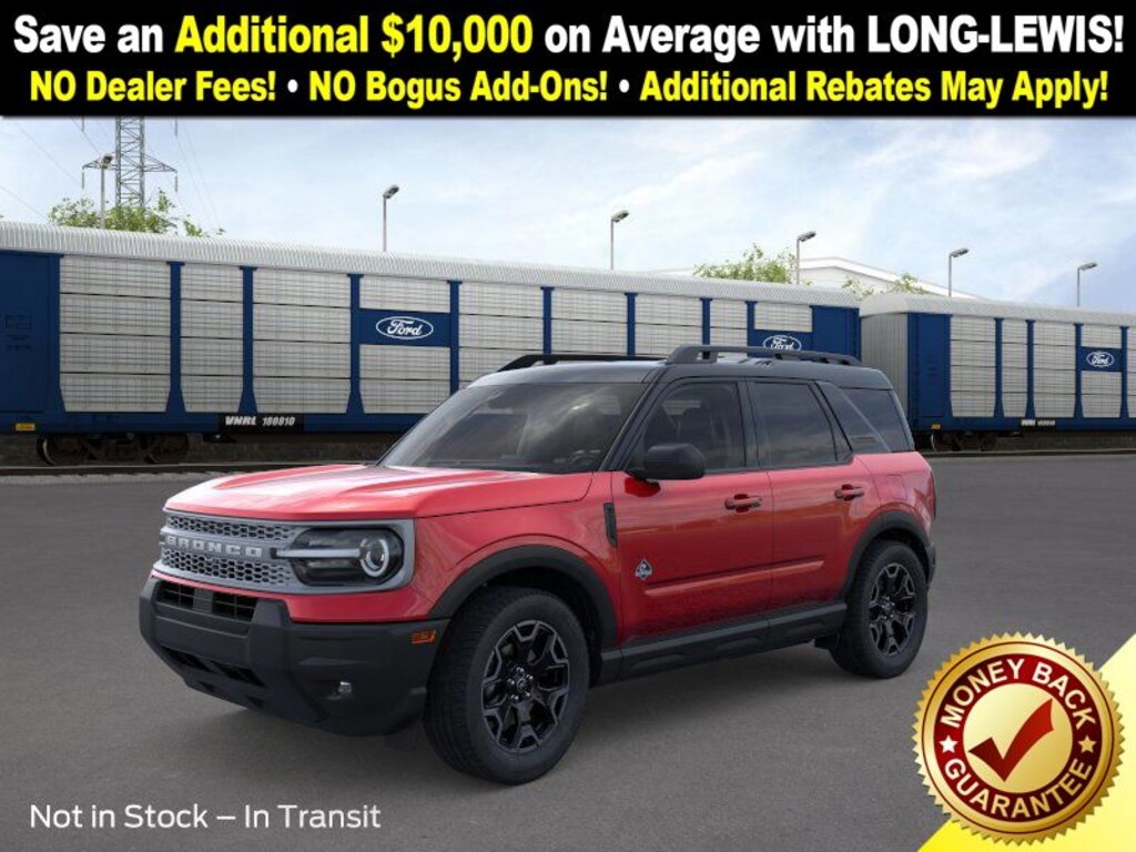 Dealer Discount of $1,994 off MSRP Priced below KBB Fair Purchase Price! Ruby Red Metallic Tinted Clearcoat 2025 Ford Bronco Sport Outer Banks 4WD 8-Speed Automatic 1.5L EcoBoost 4-Wheel Disc Brakes, 6 Speakers, ABS brakes, Air Conditioning, Alloy wheels, AM/FM radio: SiriusXM, AM/FM Stereo, Auto High-beam Headlights, Auto-dimming Rear-View mirror, Automatic temperature control, Brake assist, Compass, Delay-off headlights, Driver door bin, Driver vanity mirror, Dual front impact airbags, Dual front side impact airbags, Electronic Stability Control, Emergency communication system: SYNC 4 911 Assist, Four wheel independent suspension, Front anti-roll bar, Front Bucket Seats, Front Center Armrest, Front Driver/Passenger Seat Back Map Pockets, Front dual zone A/C, Front fog lights, Front License Plate Bracket, Front reading lights, Fully automatic headlights, Garage door transmitter, Heated door mirrors, Heated front seats, Heated steering wheel, Illuminated entry, Knee airbag, Low tire pressure warning, Memory seat, Occupant sensing airbag, Outside temperature display, Overhead airbag, Overhead console, Panic alarm, Passenger door bin, Passenger vanity mirror, Power door mirrors, Power driver seat, Power passenger seat, Power steering, Power windows, Premium Trimmed Front Bucket Seats w/Ebony/Roast, Radio data system, Rain sensing wipers, Rear anti-roll bar, Rear Parking Sensors, Rear reading lights, Rear seat center armrest, Rear window defroster, Rear window wiper, Remote keyless entry, Security system, SiriusXM, Speed control, Speed-sensing steering, Speed-Sensitive Wipers, Split folding rear seat, Steering wheel mounted audio controls, SYNC 4 w/Enhanced Voice Recognition, Tachometer, Telescoping steering wheel, Tilt steering wheel, Traction control, Trip computer, Variably intermittent wipers, Wheels: 18" Ebony Black-Painted Aluminum.