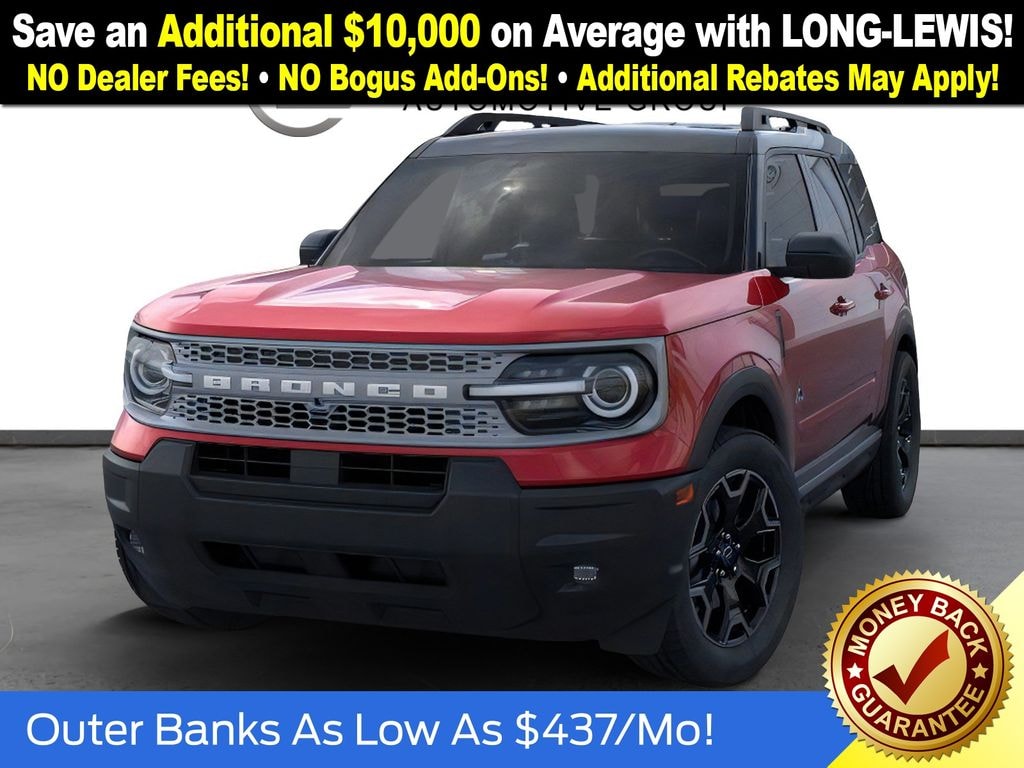 Dealer Discount of $1,994 off MSRP Priced below KBB Fair Purchase Price! Ruby Red Metallic Tinted Clearcoat 2025 Ford Bronco Sport Outer Banks NFT 4WD 8-Speed Automatic 1.5L EcoBoost 4-Wheel Disc Brakes, 6 Speakers, ABS brakes, Air Conditioning, Alloy wheels, AM/FM radio: SiriusXM, AM/FM Stereo, Auto High-beam Headlights, Auto-dimming Rear-View mirror, Automatic temperature control, Brake assist, Compass, Delay-off headlights, Driver door bin, Driver vanity mirror, Dual front impact airbags, Dual front side impact airbags, Electronic Stability Control, Emergency communication system: SYNC 4 911 Assist, Four wheel independent suspension, Front anti-roll bar, Front Bucket Seats, Front Center Armrest, Front Driver/Passenger Seat Back Map Pockets, Front dual zone A/C, Front fog lights, Front License Plate Bracket, Front reading lights, Fully automatic headlights, Garage door transmitter, Heated door mirrors, Heated front seats, Heated steering wheel, Illuminated entry, Knee airbag, Low tire pressure warning, Memory seat, Occupant sensing airbag, Outside temperature display, Overhead airbag, Overhead console, Panic alarm, Passenger door bin, Passenger vanity mirror, Power door mirrors, Power driver seat, Power passenger seat, Power steering, Power windows, Premium Trimmed Front Bucket Seats w/Ebony/Roast, Radio data system, Rain sensing wipers, Rear anti-roll bar, Rear Parking Sensors, Rear reading lights, Rear seat center armrest, Rear window defroster, Rear window wiper, Remote keyless entry, Security system, SiriusXM, Speed control, Speed-sensing steering, Speed-Sensitive Wipers, Split folding rear seat, Steering wheel mounted audio controls, SYNC 4 w/Enhanced Voice Recognition, Tachometer, Telescoping steering wheel, Tilt steering wheel, Traction control, Trip computer, Variably intermittent wipers, Wheels: 18" Ebony Black-Painted Aluminum.