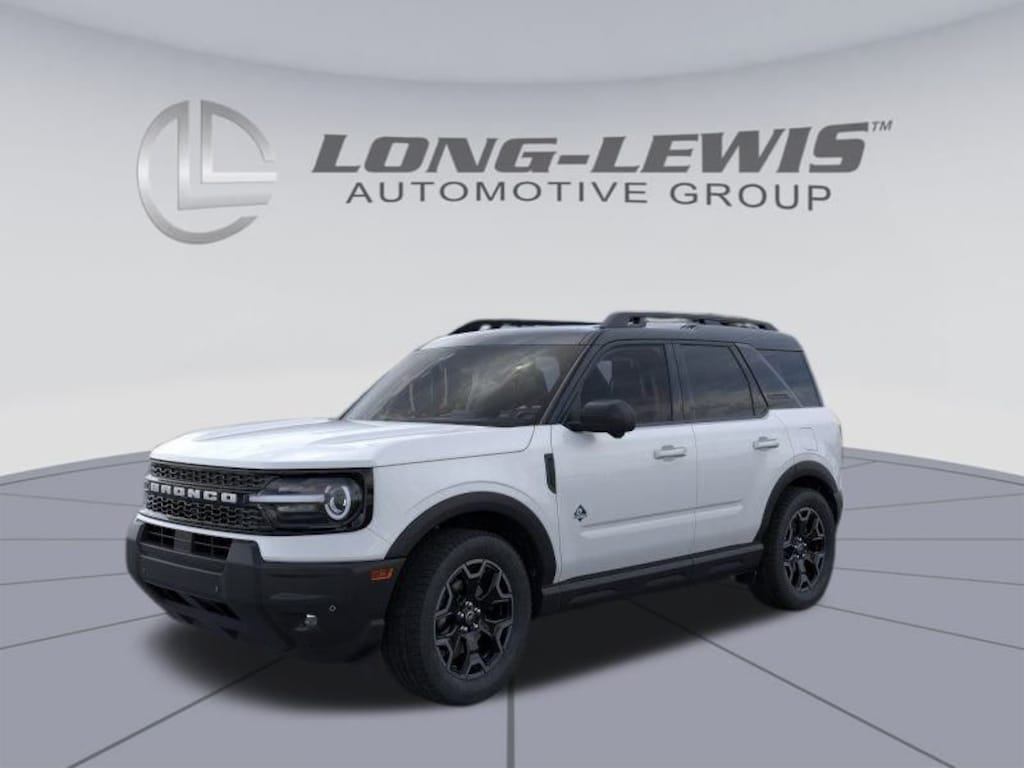 Oxford White 2025 Ford Bronco Sport Outer Banks 4WD 8-Speed Automatic 1.5L EcoBoost 360-Degree Camera w/Trail & Split View, 4-Wheel Disc Brakes, 6 Speakers, ABS brakes, Air Conditioning, Alloy wheels, AM/FM radio: SiriusXM, AM/FM Stereo, Auto High-beam Headlights, Auto-dimming Rear-View mirror, Automatic temperature control, B&O Sound System by Bang & Olufsen, Brake assist, Compass, Connected Navigation, Delay-off headlights, Driver door bin, Driver vanity mirror, Dual front impact airbags, Dual front side impact airbags, Electronic Stability Control, Emergency communication system: SYNC 4 911 Assist, Four wheel independent suspension, Front anti-roll bar, Front Bucket Seats, Front Center Armrest, Front Driver/Passenger Seat Back Map Pockets, Front dual zone A/C, Front fog lights, Front License Plate Bracket, Front Parking Sensors, Front reading lights, Fully automatic headlights, Garage door transmitter, HD Radio, Heated door mirrors, Heated front seats, Heated steering wheel, Illuminated entry, Knee airbag, Low tire pressure warning, Memory seat, Occupant sensing airbag, Outer Banks Tech Package+, Outside temperature display, Overhead airbag, Overhead console, Panic alarm, Passenger door bin, Passenger vanity mirror, Power door mirrors, Power driver seat, Power Moonroof, Power passenger seat, Power steering, Power windows, Premium Trimmed Front Bucket Seats w/Ebony/Roast, Radio data system, Rain sensing wipers, Rear anti-roll bar, Rear Parking Sensors, Rear reading lights, Rear seat center armrest, Rear window defroster, Rear window wiper, Remote keyless entry, Reverse Brake Assist, Security system, SiriusXM, Speed control, Speed-sensing steering, Speed-Sensitive Wipers, Split folding rear seat, Steering wheel mounted audio controls, SYNC 4 w/Enhanced Voice Recognition, Tachometer, Telescoping steering wheel, Tilt steering wheel, Traction control, Trip computer, Variably intermittent wipers, Wheels: 18" Ebony Black-Painted Aluminum.
