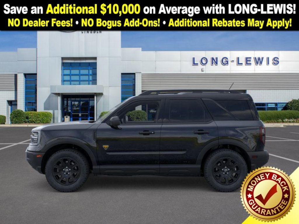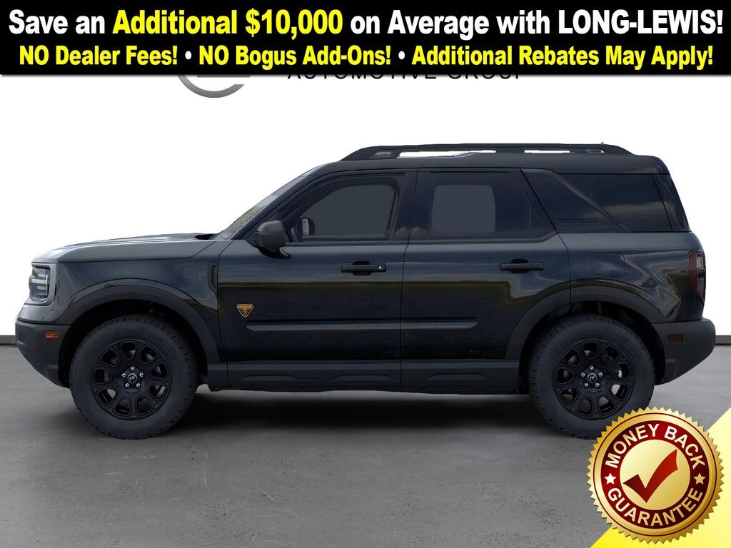 Dealer Discount of $2,526 off MSRP Priced below KBB Fair Purchase Price! Shadow Black 2025 Ford Bronco Sport Badlands fctp 4WD 8-Speed Automatic EcoBoost 2.0L I4 GTDi DOHC Turbocharged VCT 4-Wheel Disc Brakes, 6 Speakers, ABS brakes, Air Conditioning, Alloy wheels, AM/FM radio: SiriusXM, AM/FM Stereo, Auto High-beam Headlights, Auto-dimming Rear-View mirror, Automatic temperature control, Brake assist, Compass, Delay-off headlights, Driver door bin, Driver vanity mirror, Dual front impact airbags, Dual front side impact airbags, Electronic Stability Control, Emergency communication system: SYNC 4 911 Assist, Equipment Group 400A, Four wheel independent suspension, Front anti-roll bar, Front Bucket Seats, Front Center Armrest, Front fog lights, Front License Plate Bracket, Front reading lights, Fully automatic headlights, Garage door transmitter, Heated door mirrors, Heated front seats, Heated steering wheel, Illuminated entry, Knee airbag, Leather Trimmed Front Bucket Seats, Low tire pressure warning, Memory seat, Occupant sensing airbag, Outside temperature display, Overhead airbag, Overhead console, Panic alarm, Passenger door bin, Passenger vanity mirror, Power door mirrors, Power driver seat, Power passenger seat, Power steering, Power windows, Radio data system, Rear anti-roll bar, Rear reading lights, Rear seat center armrest, Rear window defroster, Rear window wiper, Remote keyless entry, Security system, SiriusXM, Speed control, Speed-sensing steering, Speed-Sensitive Wipers, Split folding rear seat, Steering wheel mounted audio controls, SYNC 4 w/Enhanced Voice Recognition, Tachometer, Telescoping steering wheel, Tilt steering wheel, Traction control, Trip computer, Variably intermittent wipers, Wheels: 17" Matte Black-Painted Aluminum.
