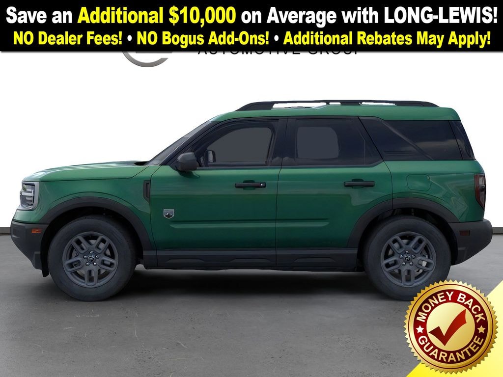 Eruption Green Metallic 2025 Ford Bronco Sport Big Bend NFT 4WD 8-Speed Automatic 1.5L EcoBoost 4-Wheel Disc Brakes, 6 Speakers, ABS brakes, Air Conditioning, Alloy wheels, AM/FM radio: SiriusXM, AM/FM Stereo, Auto High-beam Headlights, Automatic temperature control, Brake assist, Cloth w/Easy-to-Clean Front Bucket Seats, Compass, Delay-off headlights, Driver door bin, Driver vanity mirror, Dual front impact airbags, Dual front side impact airbags, Electronic Stability Control, Emergency communication system: SYNC 4 911 Assist, Four wheel independent suspension, Front anti-roll bar, Front Bucket Seats, Front Center Armrest, Front License Plate Bracket, Front reading lights, Fully automatic headlights, Heated door mirrors, Illuminated entry, Knee airbag, Low tire pressure warning, Occupant sensing airbag, Outside temperature display, Overhead airbag, Overhead console, Panic alarm, Passenger door bin, Passenger vanity mirror, Power door mirrors, Power steering, Power windows, Radio data system, Rear anti-roll bar, Rear Parking Sensors, Rear reading lights, Rear seat center armrest, Rear window defroster, Rear window wiper, Remote keyless entry, Security system, SiriusXM, Speed control, Speed-sensing steering, Speed-Sensitive Wipers, Split folding rear seat, Steering wheel mounted audio controls, SYNC 4 w/Enhanced Voice Recognition, Tachometer, Telescoping steering wheel, Tilt steering wheel, Traction control, Trip computer, Variably intermittent wipers, Wheels: 17" Carbonized Gray Painted Aluminum, Wheels: 17" Carbonized Gray-Painted Aluminum.