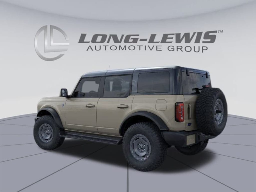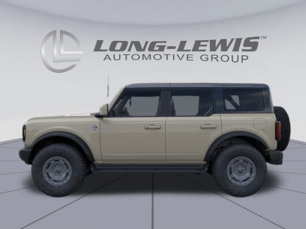 Desert Sand 2025 Ford Bronco Outer Banks 4WD 10-Speed Automatic 2.7L EcoBoost V6 18" Bright Machined Aluminum Wheels, 3.73 Axle Ratio, 4-Wheel Disc Brakes, 4.7 Final Drive Ratio, 7 Speakers, ABS brakes, Air Conditioning, Alloy wheels, AM/FM radio: SiriusXM with 360L, AM/FM Stereo, Auto High-beam Headlights, Auto-dimming Rear-View mirror, Automatic temperature control, Brake assist, Compass, Connected Navigation, Delay-off headlights, Driver door bin, Driver vanity mirror, Dual front impact airbags, Dual front side impact airbags, Electronic Stability Control, Emergency communication system: 911 Assist, Exterior Parking Camera Rear, Front anti-roll bar, Front Bucket Seats, Front Center Armrest, Front dual zone A/C, Front fog lights, Front License Plate Bracket, Front reading lights, Front wheel independent suspension, Fully automatic headlights, Hard Top Sound Deadening Headliner, Heated door mirrors, Heated front seats, Heated Leather-Trimmed/Vinyl Bucket Seats, Heated steering wheel, High Clearance Fender Flares, High Clearance Suspension, Illuminated entry, Integrated roll-over protection, Leather Shift Knob, Low tire pressure warning, Navigation system: Connected Navigation, Occupant sensing airbag, Outside temperature display, Overhead airbag, Overhead console, Panic alarm, Passenger door bin, Passenger vanity mirror, Position-Sensitive Bilstein Shock Absorbers, Power door mirrors, Power driver seat, Power passenger seat, Power steering, Power windows, Radio data system, Rear seat center armrest, Rear-Window Defroster & Washer, Remote keyless entry, Sasquatch Package, Security system, Shadow Black-Painted Hard Top, SiriusXM w/360L, Speed control, Split folding rear seat, Steering wheel mounted audio controls, SYNC 4, Tachometer, Telescoping steering wheel, Tilt steering wheel, Traction control, Trip computer, Variably intermittent wipers, Voltmeter.