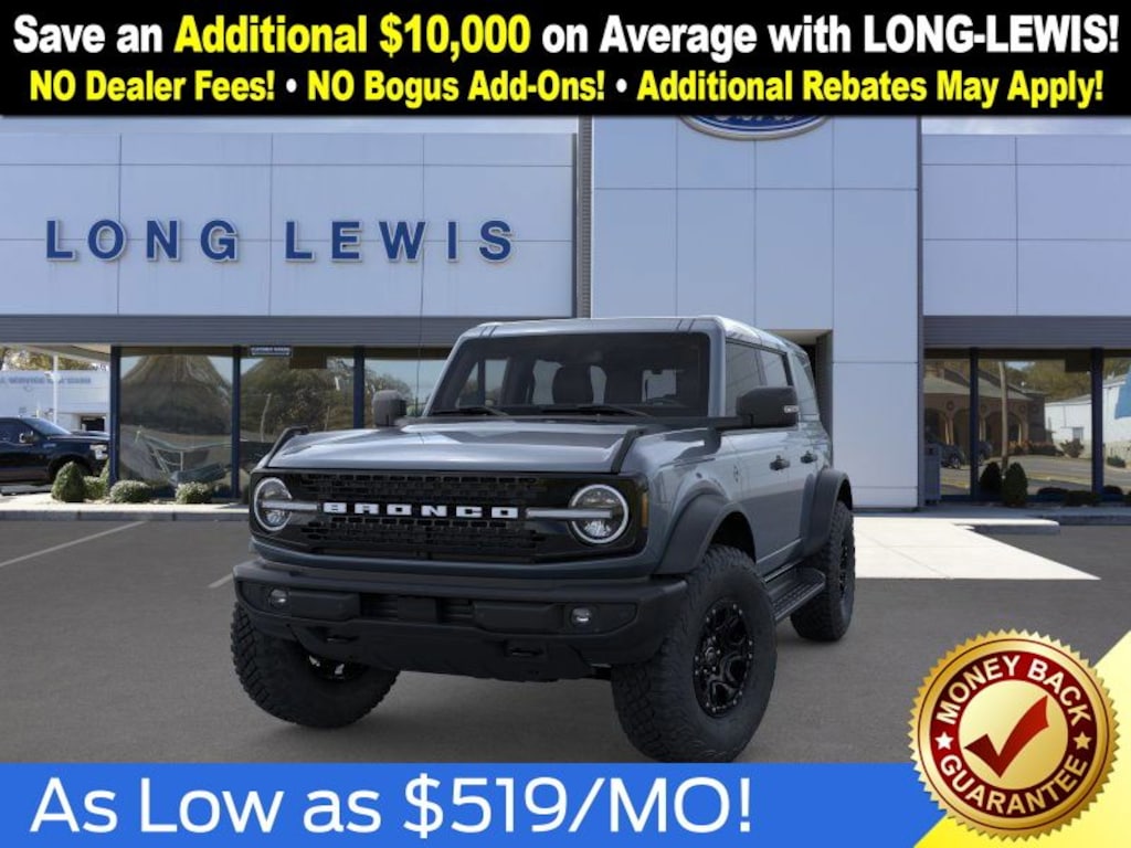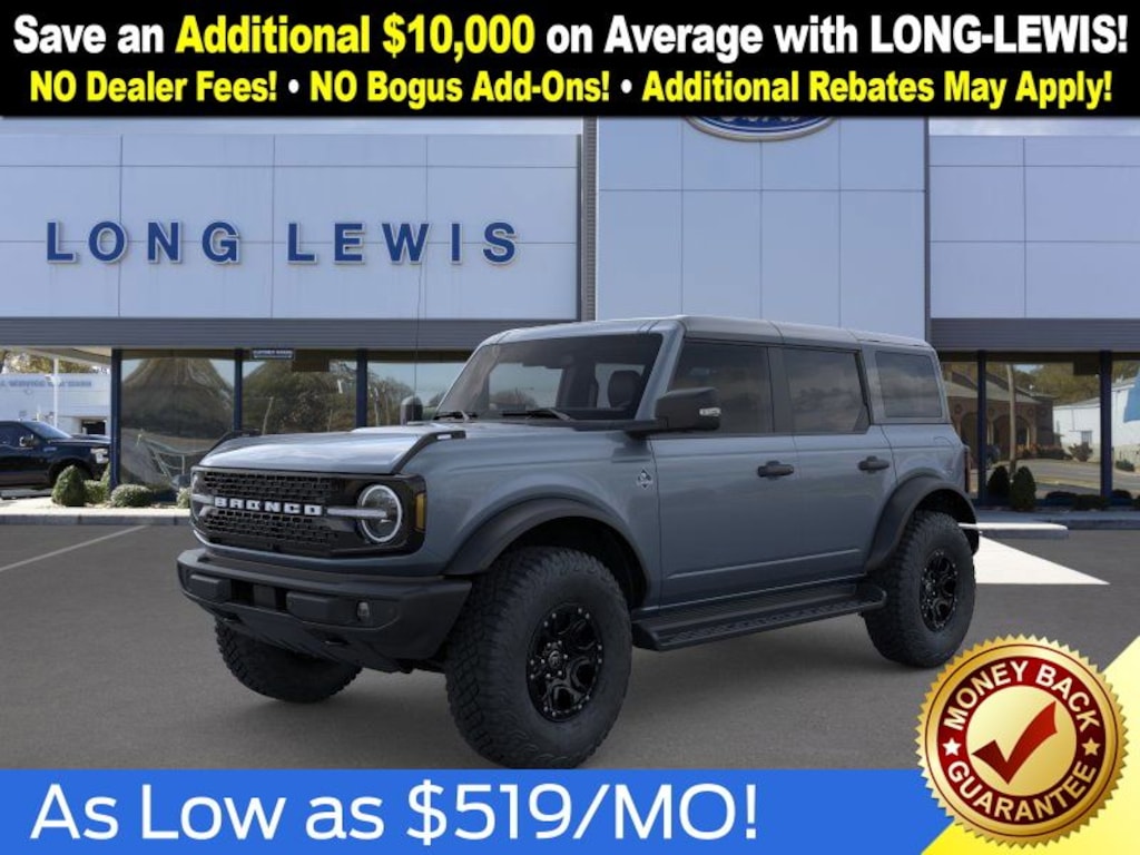 Azure Gray Metallic Tri-Coat 2025 Ford Bronco Outer Banks FCT 4WD 10-Speed Automatic 2.7L EcoBoost V6 18" Bright Machined Aluminum Wheels, 3.73 Axle Ratio, 4-Wheel Disc Brakes, 4.7 Final Drive Ratio, 7 Speakers, ABS brakes, Air Conditioning, Alloy wheels, AM/FM radio: SiriusXM with 360L, AM/FM Stereo, Auto High-beam Headlights, Auto-dimming Rear-View mirror, Automatic temperature control, Black Appearance Package, Black Molded-In-Color Door Handles, Black Molded-In-Color Fender Flares, Black Molded-In-Color Sideview Mirror Caps, Black-Painted Molded-In-Color Grille, Brake assist, Compass, Connected Navigation, Delay-off headlights, Driver door bin, Driver vanity mirror, Dual front impact airbags, Dual front side impact airbags, Electronic Stability Control, Emergency communication system: 911 Assist, Exterior Parking Camera Rear, Front anti-roll bar, Front Bucket Seats, Front Center Armrest, Front dual zone A/C, Front fog lights, Front License Plate Bracket, Front reading lights, Front wheel independent suspension, Fully automatic headlights, Hard Top Sound Deadening Headliner, Heated door mirrors, Heated front seats, Heated Leather-Trimmed/Vinyl Bucket Seats, Heated steering wheel, High Clearance Fender Flares, High Clearance Suspension, Illuminated entry, Integrated roll-over protection, Leather Shift Knob, Low tire pressure warning, Navigation system: Connected Navigation, Occupant sensing airbag, Outside temperature display, Overhead airbag, Overhead console, Panic alarm, Passenger door bin, Passenger vanity mirror, Position-Sensitive Bilstein Shock Absorbers, Power door mirrors, Power driver seat, Power passenger seat, Power steering, Power windows, Radio data system, Rear seat center armrest, Rear-Window Defroster & Washer, Remote keyless entry, Sasquatch Package, Security system, Shadow Black-Painted Hard Top, SiriusXM w/360L, Speed control, Split folding rear seat, Steering wheel mounted audio controls, SYNC 4, Tachometer, Telescoping steering wheel, Tilt steering wheel, Traction control, Trip computer, Variably intermittent wipers, Voltmeter.