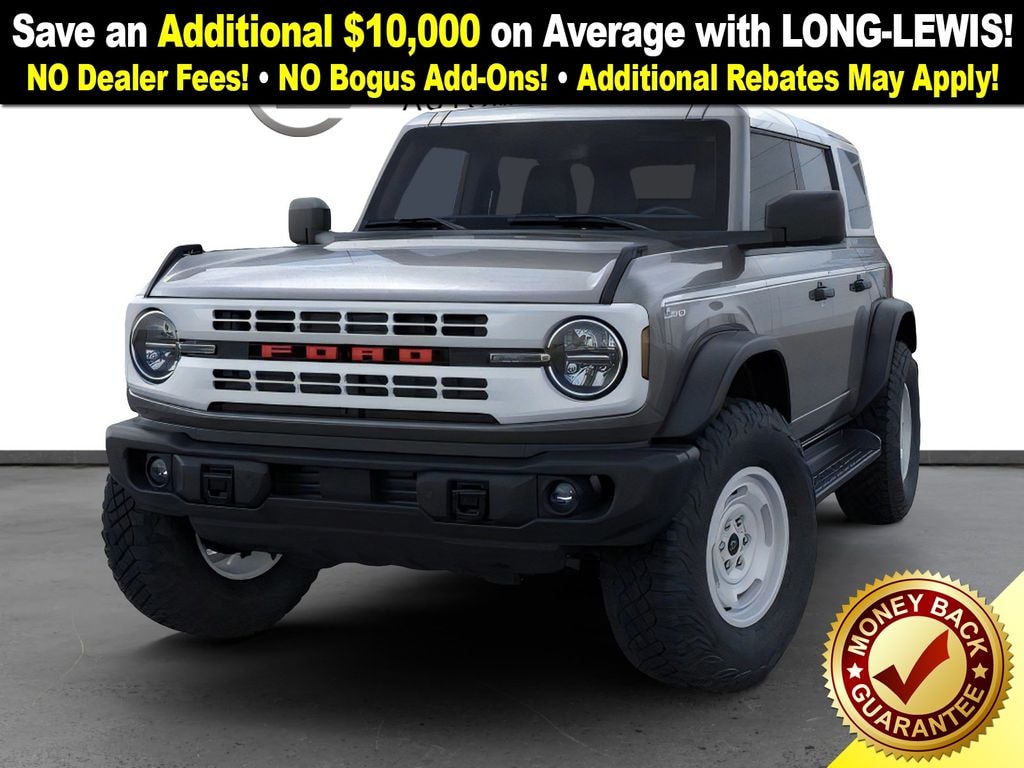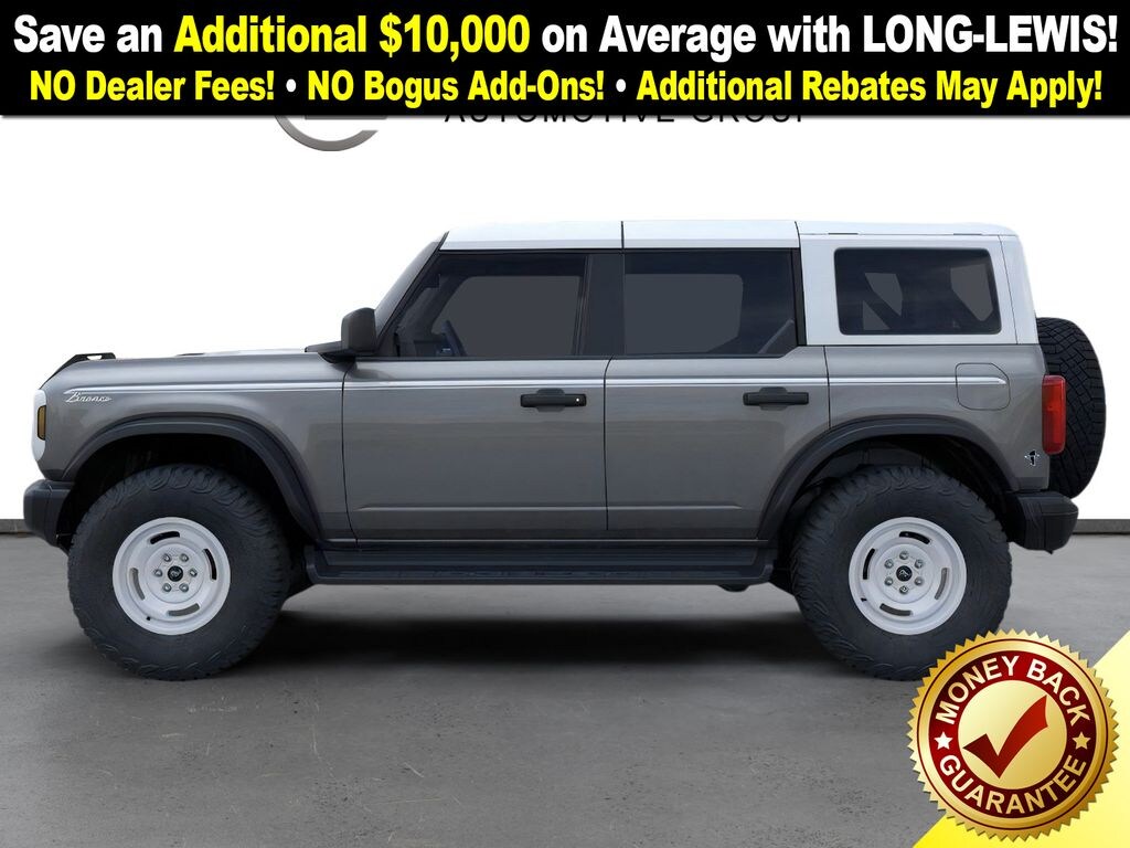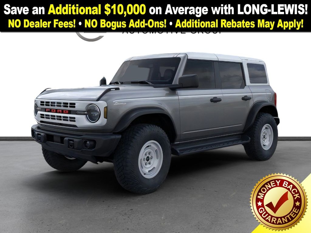 Dealer Discount of $1,424 off MSRP Priced below KBB Fair Purchase Price! Carbonized Gray Metallic 2025 Ford Bronco Heritage Edition NFT 4WD 10-Speed Automatic 2.7L EcoBoost V6 4-Wheel Disc Brakes, 7 Speakers, ABS brakes, Air Conditioning, Alloy wheels, AM/FM radio: SiriusXM with 360L, AM/FM Stereo, Auto High-beam Headlights, Auto-dimming Rear-View mirror, Automatic temperature control, Brake assist, Compass, Connected Navigation, Convertible HardTop, Convertible roof lining, Delay-off headlights, Driver door bin, Driver vanity mirror, Dual front impact airbags, Dual front side impact airbags, Electronic Stability Control, Emergency communication system: 911 Assist, Equipment Group 662A Mid Package, Exterior Parking Camera Rear, Front anti-roll bar, Front Bucket Seats, Front Center Armrest, Front dual zone A/C, Front fog lights, Front License Plate Bracket, Front reading lights, Front wheel independent suspension, Fully automatic headlights, Glass rear window, Heated door mirrors, Heated front seats, Heated steering wheel, Illuminated entry, Integrated roll-over protection, Internet access capable: FordPass Connect, Leather Shift Knob, Low tire pressure warning, Navigation system: Connected Navigation, Occupant sensing airbag, Outside temperature display, Overhead airbag, Overhead console, Panic alarm, Passenger door bin, Passenger vanity mirror, Plaid Cloth Front Heated Bucket Seats, Power door mirrors, Power steering, Power windows, Radio data system, Rear window defroster, Rear window wiper, Remote keyless entry, Security system, SiriusXM w/360L, Speed control, Split folding rear seat, Steering wheel mounted audio controls, SYNC 4, Tachometer, Telescoping steering wheel, Tilt steering wheel, Traction control, Trip computer, Variably intermittent wipers, Wheels: 17" Unique White.