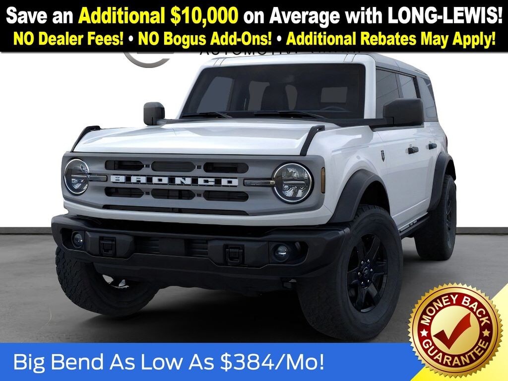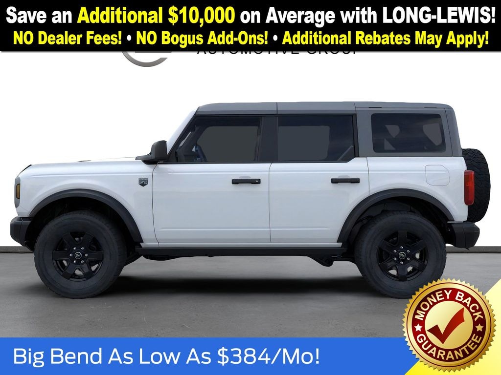 Oxford White 2025 Ford Bronco Big Bend FCT 4WD 10-Speed Automatic 2.3L EcoBoost I-4 4-Wheel Disc Brakes, 7 Speakers, ABS brakes, Air Conditioning, Alloy wheels, AM/FM radio: SiriusXM with 360L, AM/FM Stereo, Auto High-beam Headlights, Auxiliary Switches, Black Diamond Package, Brake assist, Carbonized Gray Molded-In-Color Hard Top, Cloth Bucket Seats, Compass, Delay-off headlights, Driver door bin, Driver vanity mirror, Dual front impact airbags, Dual front side impact airbags, Electronic Stability Control, Emergency communication system: 911 Assist, Exterior Parking Camera Rear, Front anti-roll bar, Front Bucket Seats, Front Center Armrest, Front License Plate Bracket, Front reading lights, Front wheel independent suspension, Fully automatic headlights, Hard Top Sound Deadening Headliner, Heated door mirrors, Illuminated entry, Integrated roll-over protection, Internet access capable: FordPass Connect, Leather Shift Knob, LED Fog Lamps, Low tire pressure warning, Occupant sensing airbag, Outside temperature display, Overhead airbag, Overhead console, Panic alarm, Passenger door bin, Passenger vanity mirror, Powder Coated Steel Front & Rear Bumpers, Power door mirrors, Power steering, Power windows, Radio data system, Rear-Window Defroster & Washer, Remote keyless entry, Rock Rails, Security system, SiriusXM w/360L, Speed control, Split folding rear seat, Steering wheel mounted audio controls, SYNC 4, Tachometer, Telescoping steering wheel, Tilt steering wheel, Traction control, Trip computer, Variably intermittent wipers, Washout Capable Rubberized Flooring, Wheels: 17" Black High Gloss Painted Aluminum, Wheels: 17" Carbonized Gray-Painted Aluminum. Price includes: $2500 - Retail Customer Cash. Exp. 03/31/2026