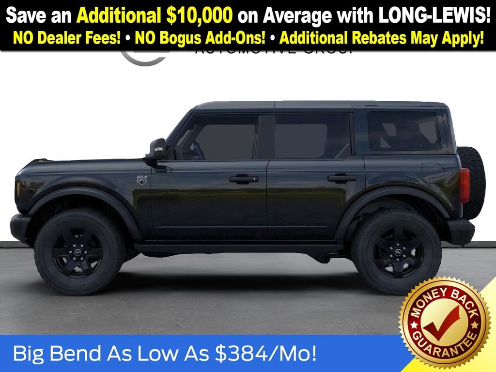 Dealer Discount of $1,602 off MSRP Shadow Black 2025 Ford Bronco Big Bend NFT 4WD 10-Speed Automatic 2.3L EcoBoost I-4 4-Wheel Disc Brakes, 7 Speakers, ABS brakes, Air Conditioning, Alloy wheels, AM/FM radio: SiriusXM with 360L, AM/FM Stereo, Auto High-beam Headlights, Auxiliary Switches, Black Appearance Package, Black Diamond Package, Black Molded-In-Color Door Handles, Black Molded-In-Color Fender Flares, Black Molded-In-Color Sideview Mirror Caps, Black-Painted Molded-In-Color Grille, Brake assist, Cloth Bucket Seats, Compass, Delay-off headlights, Driver door bin, Driver vanity mirror, Dual front impact airbags, Dual front side impact airbags, Electronic Stability Control, Emergency communication system: 911 Assist, Exterior Parking Camera Rear, Front anti-roll bar, Front Bucket Seats, Front Center Armrest, Front License Plate Bracket, Front reading lights, Front wheel independent suspension, Fully automatic headlights, Hard Top Sound Deadening Headliner, Heated door mirrors, Illuminated entry, Integrated roll-over protection, Internet access capable: FordPass Connect, Leather Shift Knob, LED Fog Lamps, Low tire pressure warning, Occupant sensing airbag, Outside temperature display, Overhead airbag, Overhead console, Panic alarm, Passenger door bin, Passenger vanity mirror, Powder Coated Steel Front & Rear Bumpers, Power door mirrors, Power steering, Power windows, Radio data system, Rear-Window Defroster & Washer, Remote keyless entry, Rock Rails, Security system, Shadow Black Painted Hard Top, SiriusXM w/360L, Speed control, Split folding rear seat, Steering wheel mounted audio controls, SYNC 4, Tachometer, Telescoping steering wheel, Tilt steering wheel, Traction control, Trip computer, Variably intermittent wipers, Washout Capable Rubberized Flooring, Wheels: 17" Black High Gloss Painted Aluminum, Wheels: 17" Carbonized Gray-Painted Aluminum. Price includes: $2500 - Retail Customer Cash. Exp. 03/31/2026