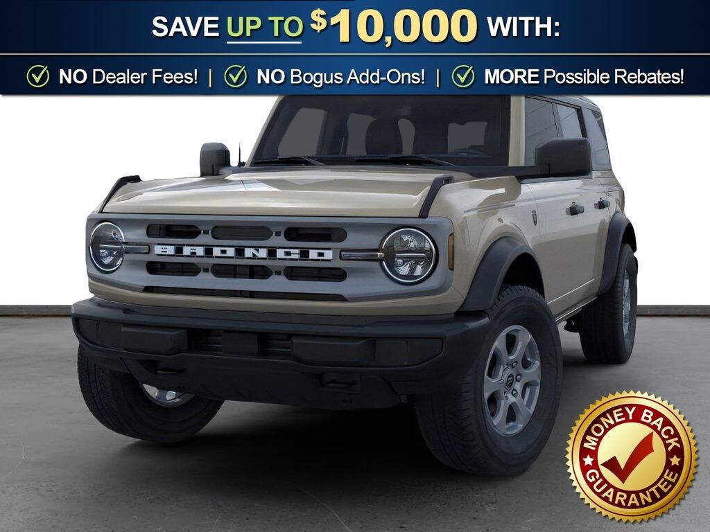 Desert Sand 2025 Ford Bronco Big Bend FCT 4WD 10-Speed Automatic 2.3L EcoBoost I-4 4-Wheel Disc Brakes, 4.46 Axle Ratio, 7 Speakers, ABS brakes, Air Conditioning, Alloy wheels, AM/FM radio: SiriusXM with 360L, AM/FM Stereo, Auto High-beam Headlights, Brake assist, Carbonized Gray Molded-In-Color Hard Top, Cloth Bucket Seats, Compass, Delay-off headlights, Driver door bin, Driver vanity mirror, Dual front impact airbags, Dual front side impact airbags, Electronic Stability Control, Emergency communication system: 911 Assist, Exterior Parking Camera Rear, Front anti-roll bar, Front Bucket Seats, Front Center Armrest, Front License Plate Bracket, Front reading lights, Front wheel independent suspension, Fully automatic headlights, Hard Top Sound Deadening Headliner, Heated door mirrors, Illuminated entry, Integrated roll-over protection, Internet access capable: FordPass Connect, Leather Shift Knob, Low tire pressure warning, Occupant sensing airbag, Outside temperature display, Overhead airbag, Overhead console, Panic alarm, Passenger door bin, Passenger vanity mirror, Power door mirrors, Power steering, Power windows, Radio data system, Rear-Window Defroster & Washer, Remote keyless entry, Security system, SiriusXM w/360L, Speed control, Split folding rear seat, Steering wheel mounted audio controls, SYNC 4, Tachometer, Telescoping steering wheel, Tilt steering wheel, Traction control, Trip computer, Variably intermittent wipers, Wheels: 17" Carbonized Gray-Painted Aluminum. Price includes: $2500 - Retail Customer Cash. Exp. 03/31/2026