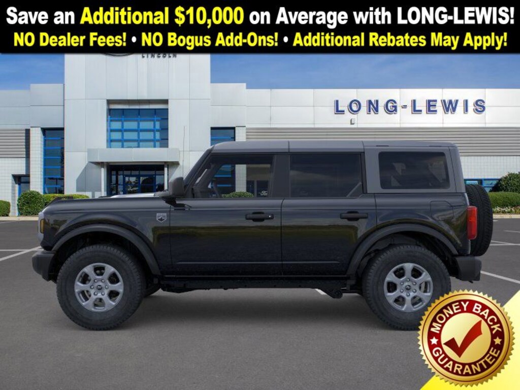 Dealer Discount of $2,306 off MSRP Shadow Black 2025 Ford Bronco Big Bend 4WD 10-Speed Automatic 2.3L EcoBoost I-4 4-Wheel Disc Brakes, 4.46 Axle Ratio, 7 Speakers, ABS brakes, Air Conditioning, Alloy wheels, AM/FM radio: SiriusXM with 360L, AM/FM Stereo, Auto High-beam Headlights, Brake assist, Carbonized Gray Molded-In-Color Hard Top, Cloth Bucket Seats, Compass, Delay-off headlights, Driver door bin, Driver vanity mirror, Dual front impact airbags, Dual front side impact airbags, Electronic Stability Control, Emergency communication system: 911 Assist, Exterior Parking Camera Rear, Front anti-roll bar, Front Bucket Seats, Front Center Armrest, Front License Plate Bracket, Front reading lights, Front wheel independent suspension, Fully automatic headlights, Hard Top Sound Deadening Headliner, Heated door mirrors, Illuminated entry, Integrated roll-over protection, Leather Shift Knob, Low tire pressure warning, Occupant sensing airbag, Outside temperature display, Overhead airbag, Overhead console, Panic alarm, Passenger door bin, Passenger vanity mirror, Power door mirrors, Power steering, Power windows, Radio data system, Rear-Window Defroster & Washer, Remote keyless entry, Security system, SiriusXM w/360L, Speed control, Split folding rear seat, Steering wheel mounted audio controls, SYNC 4, Tachometer, Telescoping steering wheel, Tilt steering wheel, Traction control, Trip computer, Variably intermittent wipers, Wheels: 17" Carbonized Gray-Painted Aluminum. Price includes: $2000 - Retail Bonus Cash. Exp. 01/05/2026