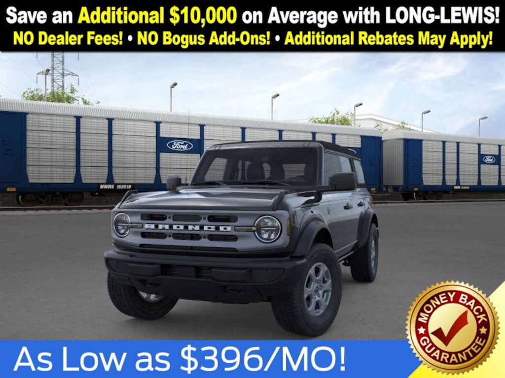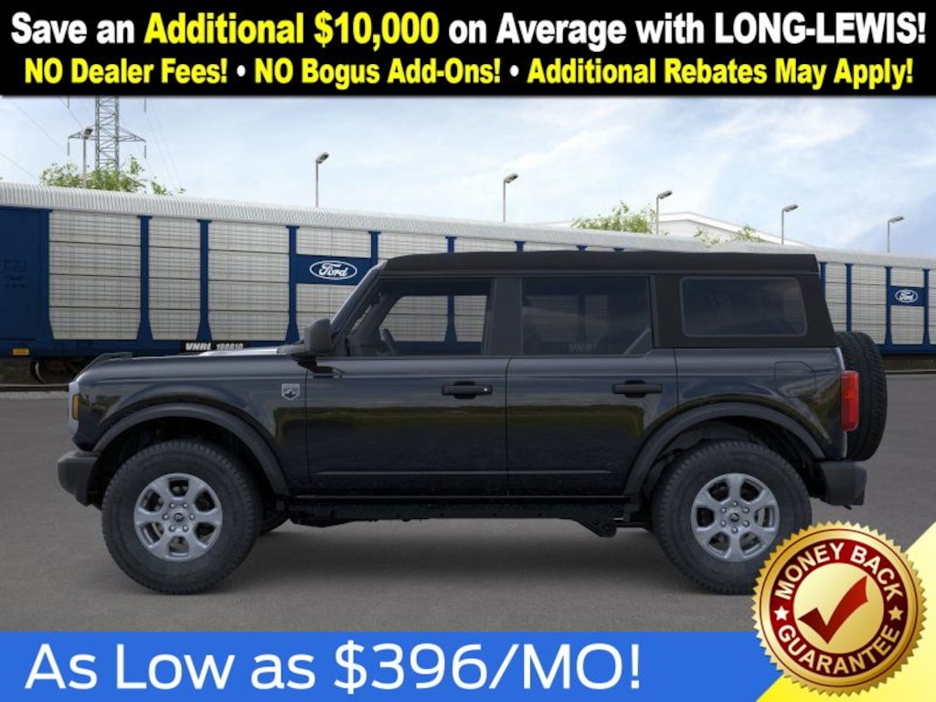 Shadow Black 2025 Ford Bronco Big Bend NFT 4WD 10-Speed Automatic 2.3L EcoBoost I-4 4-Wheel Disc Brakes, 4.46 Axle Ratio, 7 Speakers, ABS brakes, Air Conditioning, Alloy wheels, AM/FM radio: SiriusXM with 360L, AM/FM Stereo, Auto High-beam Headlights, Brake assist, Cloth Bucket Seats, Compass, Delay-off headlights, Driver door bin, Driver vanity mirror, Dual front impact airbags, Dual front side impact airbags, Electronic Stability Control, Emergency communication system: 911 Assist, Exterior Parking Camera Rear, Front anti-roll bar, Front Bucket Seats, Front Center Armrest, Front License Plate Bracket, Front reading lights, Front wheel independent suspension, Fully automatic headlights, Heated door mirrors, Illuminated entry, Integrated roll-over protection, Internet access capable: FordPass Connect, Leather Shift Knob, Low tire pressure warning, Occupant sensing airbag, Outside temperature display, Overhead airbag, Overhead console, Panic alarm, Passenger door bin, Passenger vanity mirror, Power door mirrors, Power steering, Power windows, Radio data system, Remote keyless entry, Security system, SiriusXM w/360L, Speed control, Split folding rear seat, Steering wheel mounted audio controls, SYNC 4, Tachometer, Telescoping steering wheel, Tilt steering wheel, Traction control, Trip computer, Variably intermittent wipers, Wheels: 17" Carbonized Gray-Painted Aluminum.