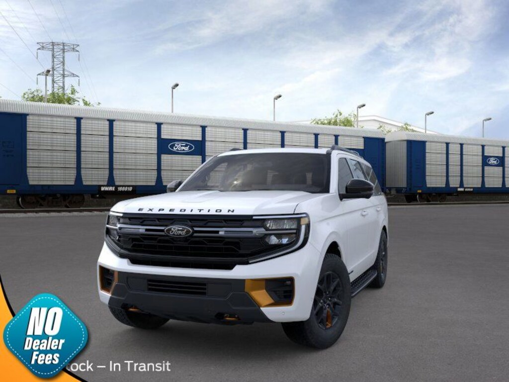 Dealer Discount of $754 off MSRP Star White Metallic Tri-Coat 2025 Ford Expedition Tremor 4WD 10-Speed Automatic 3.5L V6 4WD, 10 Speakers, 2nd Row Power-Folding Captain's Chairs, 3.73 Axle Ratio, 3rd row seats: split-bench, 4-Wheel Disc Brakes, ABS brakes, Adjustable pedals, Air Conditioning, Alloy wheels, AM/FM radio: SiriusXM with 360L, Apple CarPlay/Android Auto, Auto High-beam Headlights, Auto-dimming door mirrors, Auto-dimming Rear-View mirror, Automatic temperature control, Brake assist, Bumpers: body-color, Compass, Delay-off headlights, Driver door bin, Driver vanity mirror, Dual front impact airbags, Dual front side impact airbags, Electronic Stability Control, Emergency communication system: 911 Assist, Exterior Parking Camera Rear, Four wheel independent suspension, Front anti-roll bar, Front Bucket Seats, Front Center Armrest, Front dual zone A/C, Front fog lights, Front License Plate Bracket, Front reading lights, Fully automatic headlights, Garage door transmitter, Heated & Ventilated Leather Front Captain's Chairs, Heated door mirrors, Heated front seats, Heated steering wheel, Illuminated entry, Leather steering wheel, Low tire pressure warning, Memory seat, Navigation System, Occupant sensing airbag, Outside temperature display, Overhead airbag, Overhead console, Panic alarm, Passenger door bin, Passenger vanity mirror, Pedal memory, Power door mirrors, Power driver seat, Power moonroof: Vista Roof, Power passenger seat, Power steering, Power windows, Radio data system, Radio: B&O Sound System by Bang & Olufsen, Rear air conditioning, Rear anti-roll bar, Rear reading lights, Rear window defroster, Rear window wiper, Reclining 3rd row seat, Remote keyless entry, Security system, SiriusXM w/360L, Speed control, Speed-sensing steering, Speed-Sensitive Wipers, Split folding rear seat, Spoiler, Steering wheel memory, Steering wheel mounted audio controls, Tachometer, Telescoping steering wheel, Tilt steering wheel, Traction control, Trip computer, Turn signal indicator mirrors, Variably intermittent wipers, Ventilated front seats, Voltmeter, Wheels: 18" Dark Carbonized Gray Painted Aluminum, 4WD.