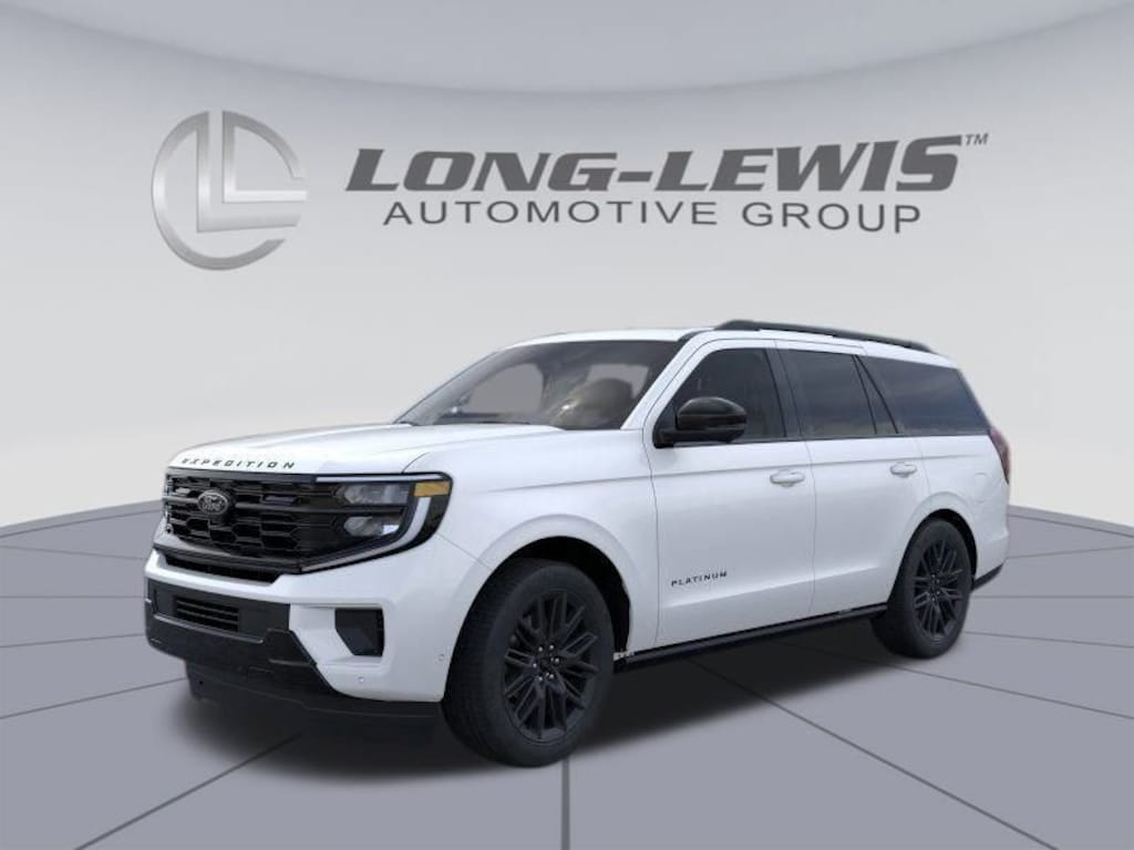 Star White Metallic Tri-Coat 2025 Ford Expedition Platinum 4WD 10-Speed Automatic 3.5L V6 4WD, 10 Speakers, 2nd Row Power-Folding Captain's Chairs, 3.73 Axle Ratio, 3rd row seats: split-bench, 4-Wheel Disc Brakes, ABS brakes, Adjustable pedals, Air Conditioning, Alloy wheels, AM/FM radio: SiriusXM with 360L, Apple CarPlay/Android Auto, Auto High-beam Headlights, Auto-dimming door mirrors, Auto-dimming Rear-View mirror, Automatic temperature control, Black Belt Molding, Black Expedition Lettering On Hood, Black Headlamp Bezel w/Ebony Trim Applique, Black Platinum Badge On Tailgate, Black Roof Rails, Brake assist, Bumpers: body-color, Carbon Black Front Bumper/Fascia, Compass, Continuous Control Damping Suspension, Delay-off headlights, Driver door bin, Driver vanity mirror, Driver's Package, Dual front impact airbags, Dual front side impact airbags, Electronic Stability Control, Emergency communication system: 911 Assist, Engine Sound Enhancer, Exterior Parking Camera Rear, Four wheel independent suspension, Front anti-roll bar, Front Bucket Seats, Front Center Armrest, Front dual zone A/C, Front License Plate Bracket, Front reading lights, Fully automatic headlights, Garage door transmitter, Genuine wood dashboard insert, Genuine wood door panel insert, Heated & Ventilated Leather Front Captain's Chairs, Heated door mirrors, Heated front seats, Heated rear seats, Heated steering wheel, High Flow Exhaust System, Illuminated entry, Leather steering wheel, Low tire pressure warning, Memory seat, Multicontour Active Motion Lthr Frnt Captains Chairs, Navigation System, Occupant sensing airbag, Outside temperature display, Overhead airbag, Overhead console, Panic alarm, Passenger door bin, Passenger vanity mirror, Pedal memory, Power door mirrors, Power driver seat, Power moonroof: Vista Roof, Power passenger seat, Power steering, Power windows, Radio data system, Radio: B&O Sound System by Bang & Olufsen, Radio: B&O Unleashed Sound System by Bang & Olufsen, Rain sensing wipers, Rear air conditioning, Rear anti-roll bar, Rear reading lights, Rear Side Windows Laminated Glass, Rear window defroster, Rear window wiper, Reclining 3rd row seat, Red Brake Calipers, Remote keyless entry, Security system, Signature Grille Lighting, SiriusXM w/360L, Speed control, Speed-sensing steering, Speed-Sensitive Wipers, Split folding rear seat, Spoiler, Stealth Appearance Package, Stealth Performance Package, Steering wheel memory, Steering wheel mounted audio controls, Tachometer, Telescoping steering wheel, Tilt steering wheel, Traction control, Trip computer, Turn signal indicator mirrors, Variably intermittent wipers, Ventilated front seats, Voltmeter, Wheels: 20" Ebony Bright Machined Aluminum, Wheels: 22" Magnetite Painted Aluminum, 4WD.