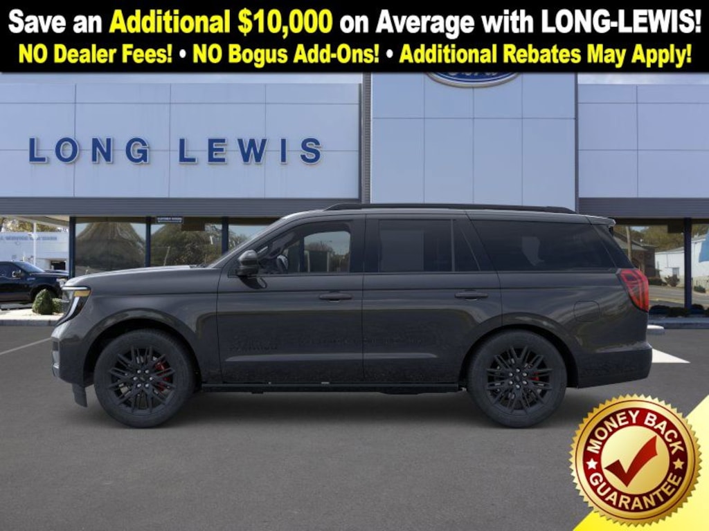Dark Matter Gray Metallic 2025 Ford Expedition Platinum NFT 4WD 10-Speed Automatic 3.5L V6 4WD, 10 Speakers, 2nd Row Power-Folding Captain's Chairs, 3.73 Axle Ratio, 3rd row seats: split-bench, 4-Wheel Disc Brakes, ABS brakes, Adjustable pedals, Air Conditioning, Alloy wheels, AM/FM radio: SiriusXM with 360L, Apple CarPlay/Android Auto, Auto High-beam Headlights, Auto-dimming door mirrors, Auto-dimming Rear-View mirror, Automatic temperature control, Brake assist, Bumpers: body-color, Compass, Delay-off headlights, Driver door bin, Driver vanity mirror, Dual front impact airbags, Dual front side impact airbags, Electronic Stability Control, Emergency communication system: 911 Assist, Exterior Parking Camera Rear, Four wheel independent suspension, Front anti-roll bar, Front Bucket Seats, Front Center Armrest, Front dual zone A/C, Front reading lights, Fully automatic headlights, Garage door transmitter, Genuine wood dashboard insert, Genuine wood door panel insert, Heated & Ventilated Leather Front Captain's Chairs, Heated door mirrors, Heated front seats, Heated rear seats, Heated steering wheel, Illuminated entry, Leather steering wheel, Low tire pressure warning, Memory seat, Navigation System, Occupant sensing airbag, Outside temperature display, Overhead airbag, Overhead console, Panic alarm, Passenger door bin, Passenger vanity mirror, Pedal memory, Power door mirrors, Power driver seat, Power moonroof: Vista Roof, Power passenger seat, Power steering, Power windows, Radio data system, Radio: B&O Sound System by Bang & Olufsen, Rain sensing wipers, Rear air conditioning, Rear anti-roll bar, Rear reading lights, Rear window defroster, Rear window wiper, Reclining 3rd row seat, Remote keyless entry, Security system, SiriusXM w/360L, Speed control, Speed-sensing steering, Speed-Sensitive Wipers, Split folding rear seat, Spoiler, Steering wheel memory, Steering wheel mounted audio controls, Tachometer, Telescoping steering wheel, Tilt steering wheel, Traction control, Trip computer, Turn signal indicator mirrors, Variably intermittent wipers, Ventilated front seats, Voltmeter, Wheels: 20" Ebony Bright Machined Aluminum, 4WD.