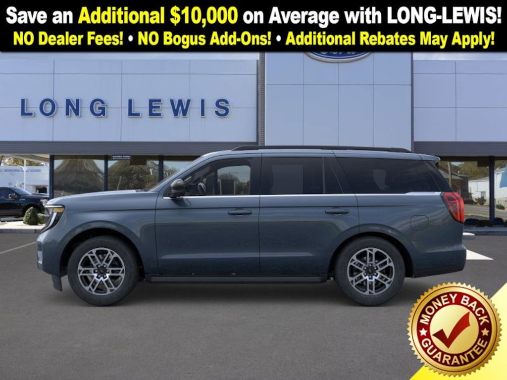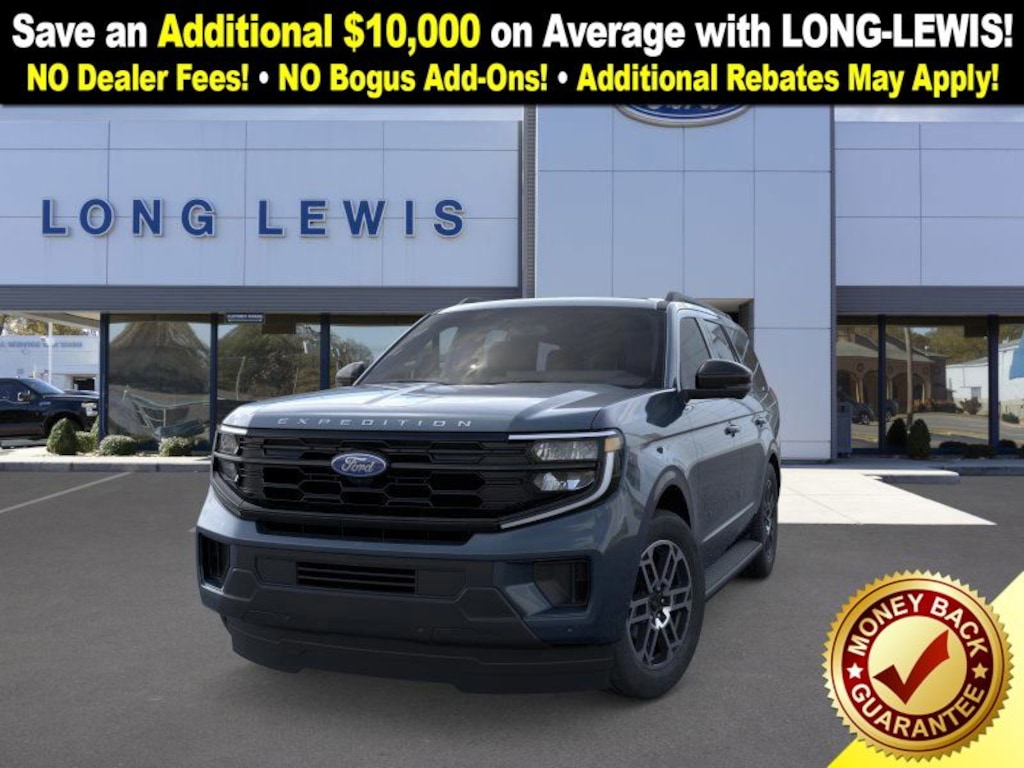 Stone Blue Metallic 2025 Ford Expedition Active NFT RWD 10-Speed Automatic EcoBoost 3.5L V6 GTDi DOHC 24V Twin Turbocharged 3.31 Axle Ratio, 3rd row seats: split-bench, 4-Wheel Disc Brakes, 6 Speakers, ABS brakes, ActiveX Front Heated Captain's Chairs, Air Conditioning, Alloy wheels, AM/FM radio: SiriusXM with 360L, Apple CarPlay/Android Auto, Auto High-beam Headlights, Auto-dimming Rear-View mirror, Automatic temperature control, Brake assist, Bumpers: body-color, Cloth Front Captain's Chairs, Compass, Delay-off headlights, Driver door bin, Driver vanity mirror, Dual front impact airbags, Dual front side impact airbags, Electronic Stability Control, Emergency communication system: 911 Assist, Exterior Parking Camera Rear, Four wheel independent suspension, Front anti-roll bar, Front Bucket Seats, Front Center Armrest, Front dual zone A/C, Front License Plate Bracket, Front reading lights, Fully automatic headlights, Heated door mirrors, Illuminated entry, Low tire pressure warning, Navigation System, Occupant sensing airbag, Outside temperature display, Overhead airbag, Overhead console, Panic alarm, Passenger door bin, Passenger vanity mirror, Power door mirrors, Power driver seat, Power passenger seat, Power steering, Power windows, Radio data system, Radio: AM/FM Stereo w/MP3 Capable, Rear air conditioning, Rear anti-roll bar, Rear reading lights, Rear window defroster, Rear window wiper, Reclining 3rd row seat, Remote keyless entry, Security system, SiriusXM w/360L, Speed control, Speed-sensing steering, Speed-Sensitive Wipers, Split folding rear seat, Spoiler, Steering wheel mounted audio controls, Tachometer, Telescoping steering wheel, Tilt steering wheel, Traction control, Trip computer, Variably intermittent wipers, Voltmeter, Wheels: 18" Dark Alloy Painted Aluminum.