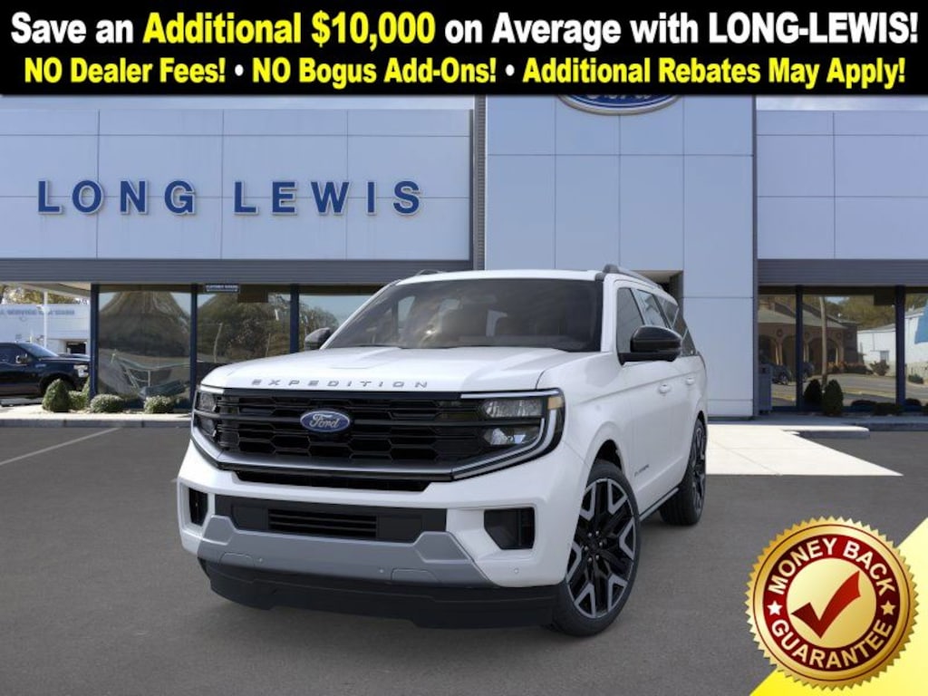 Star White Metallic Tri-Coat 2025 Ford Expedition Platinum 4WD 10-Speed Automatic 3.5L V6 4WD, 10 Speakers, 2nd Row Power-Folding Captain's Chairs, 3.73 Axle Ratio, 3rd row seats: split-bench, 4-Wheel Disc Brakes, ABS brakes, Adjustable pedals, Air Conditioning, Alloy wheels, AM/FM radio: SiriusXM with 360L, Apple CarPlay/Android Auto, Auto High-beam Headlights, Auto-dimming door mirrors, Auto-dimming Rear-View mirror, Automatic temperature control, Black Headlamp Bezel w/Satin Trim Applique, BlueCruise Equipped (1-Year Plan), Brake assist, Bumpers: body-color, Carbon Black Front Bumper w/Lit Grille Bar, Compass, Continuous Control Damping Suspension, Delay-off headlights, Driver door bin, Driver vanity mirror, Driver's Package, Dual front impact airbags, Dual front side impact airbags, Electronic Stability Control, Emergency communication system: 911 Assist, Engine Sound Enhancer, Exterior Parking Camera Rear, Four wheel independent suspension, Front anti-roll bar, Front Bucket Seats, Front Center Armrest, Front Door Scuff Plates w/Met Insert & Bright Rear, Front dual zone A/C, Front reading lights, Fully automatic headlights, Garage door transmitter, Genuine wood dashboard insert, Genuine wood door panel insert, Heated & Ventilated Leather Front Captain's Chairs, Heated door mirrors, Heated front seats, Heated rear seats, Heated steering wheel, High Flow Exhaust System, Illuminated entry, Leather steering wheel, Low tire pressure warning, Memory seat, Multicontour Active Motion Lthr Frnt Captains Chairs, Navigation System, Occupant sensing airbag, Outside temperature display, Overhead airbag, Overhead console, Panic alarm, Passenger door bin, Passenger vanity mirror, Pedal memory, Platinum Ultimate Interior Package, Platinum Ultimate Package, Polished Stainless Steel Beltline Molding, Power door mirrors, Power driver seat, Power moonroof: Vista Roof, Power passenger seat, Power steering, Power windows, Radio data system, Radio: B&O Sound System by Bang & Olufsen, Radio: B&O Unleashed Sound System by Bang & Olufsen, Rain sensing wipers, Rear air conditioning, Rear anti-roll bar, Rear reading lights, Rear Seat Radio Controls, Rear Side Windows Laminated Glass, Rear window defroster, Rear window wiper, Reclining 3rd row seat, Remote keyless entry, Satin Aluminum Expedition Lettering On Side & Hood, Satin Aluminum Platinum Badge On Tailgate, Security system, Signature Grille Lighting, SiriusXM w/360L, Speed control, Speed-sensing steering, Speed-Sensitive Wipers, Split folding rear seat, Spoiler, Steering wheel memory, Steering wheel mounted audio controls, Tachometer, Telescoping steering wheel, Tilt steering wheel, Traction control, Trip computer, Turn signal indicator mirrors, Variably intermittent wipers, Ventilated front seats, Voltmeter, Wheels: 20" Ebony Bright Machined Aluminum, Wheels: 24" Tarnished Dark Metallic (DISC), 4WD.