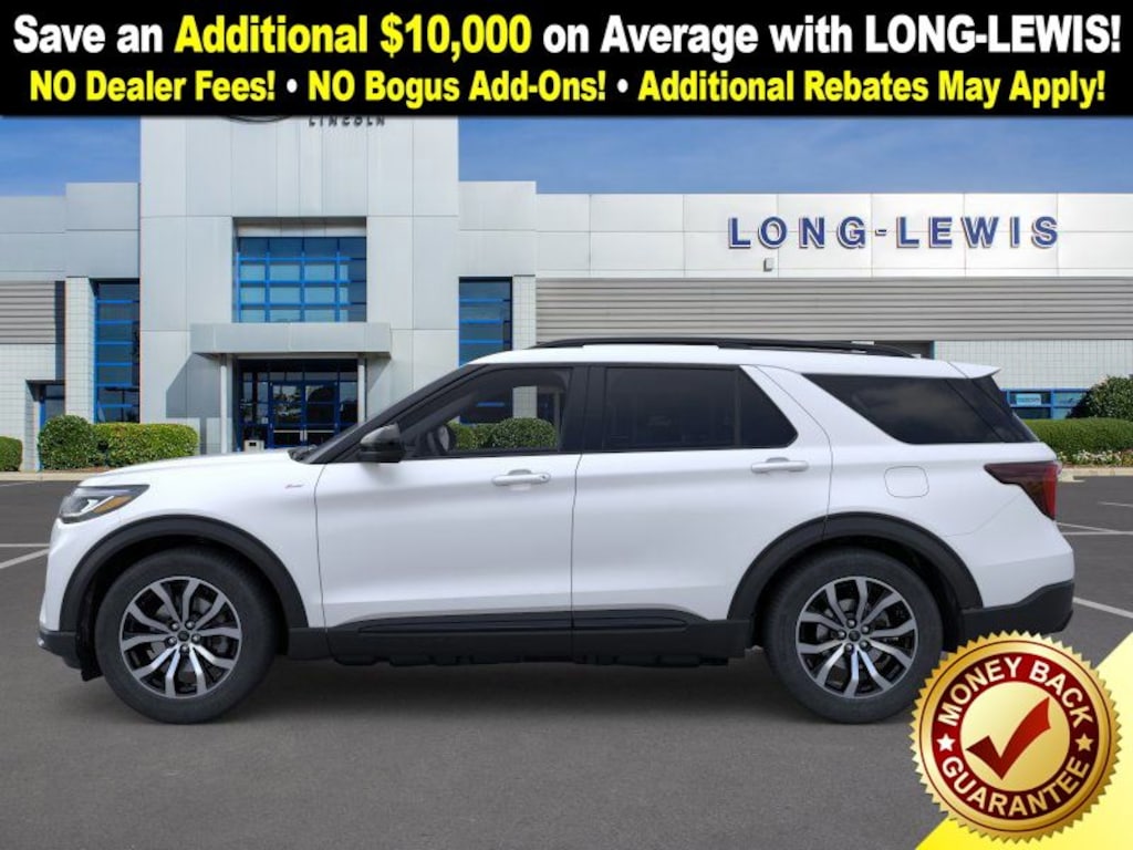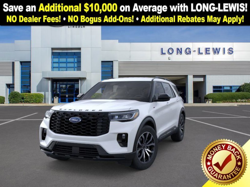 Dealer Discount of $3,129 off MSRP Priced below KBB Fair Purchase Price! Star White Metallic Tri-Coat 2025 Ford Explorer ST-Line fctp RWD 10-Speed Automatic 2.3L EcoBoost I-4 10 Speakers, 3.58 Non-Limited Slip Rear Axle, 3rd row seats: bench, 4-Wheel Disc Brakes, ABS brakes, Air Conditioning, Alloy wheels, AM/FM radio: SiriusXM with 360L, Apple CarPlay/Android Auto, Auto High-beam Headlights, Automatic temperature control, Brake assist, Bumpers: body-color, Compass, Delay-off headlights, Driver door bin, Driver vanity mirror, Dual front impact airbags, Dual front side impact airbags, Electronic Stability Control, Emergency communication system: 911 Assist, Equipment Group 300A Standard Package, Exterior Parking Camera Rear, Four wheel independent suspension, Front anti-roll bar, Front Bucket Seats, Front Center Armrest, Front dual zone A/C, Front fog lights, Front License Plate Bracket, Front reading lights, Fully automatic headlights, Garage door transmitter, Heated door mirrors, Heated front seats, Heated steering wheel, Heated Unique Cloth Captain's Chairs, Illuminated entry, Internet access capable: FordPass Connect 5G, Knee airbag, Leather steering wheel, Low tire pressure warning, Navigation System, Occupant sensing airbag, Outside temperature display, Overhead airbag, Overhead console, Panic alarm, Passenger door bin, Passenger vanity mirror, Power door mirrors, Power driver seat, Power Liftgate, Power passenger seat, Power steering, Power windows, Radio: B&O Sound System by Bang & Olufsen, Rear air conditioning, Rear anti-roll bar, Rear reading lights, Rear window defroster, Rear window wiper, Remote keyless entry, Security system, Speed control, Speed-sensing steering, Speed-Sensitive Wipers, Split folding rear seat, Spoiler, Steering wheel mounted audio controls, Tachometer, Telescoping steering wheel, Tilt steering wheel, Traction control, Trip computer, Variably intermittent wipers, Wheels: 20" Ebony-Painted Machined Aluminum.