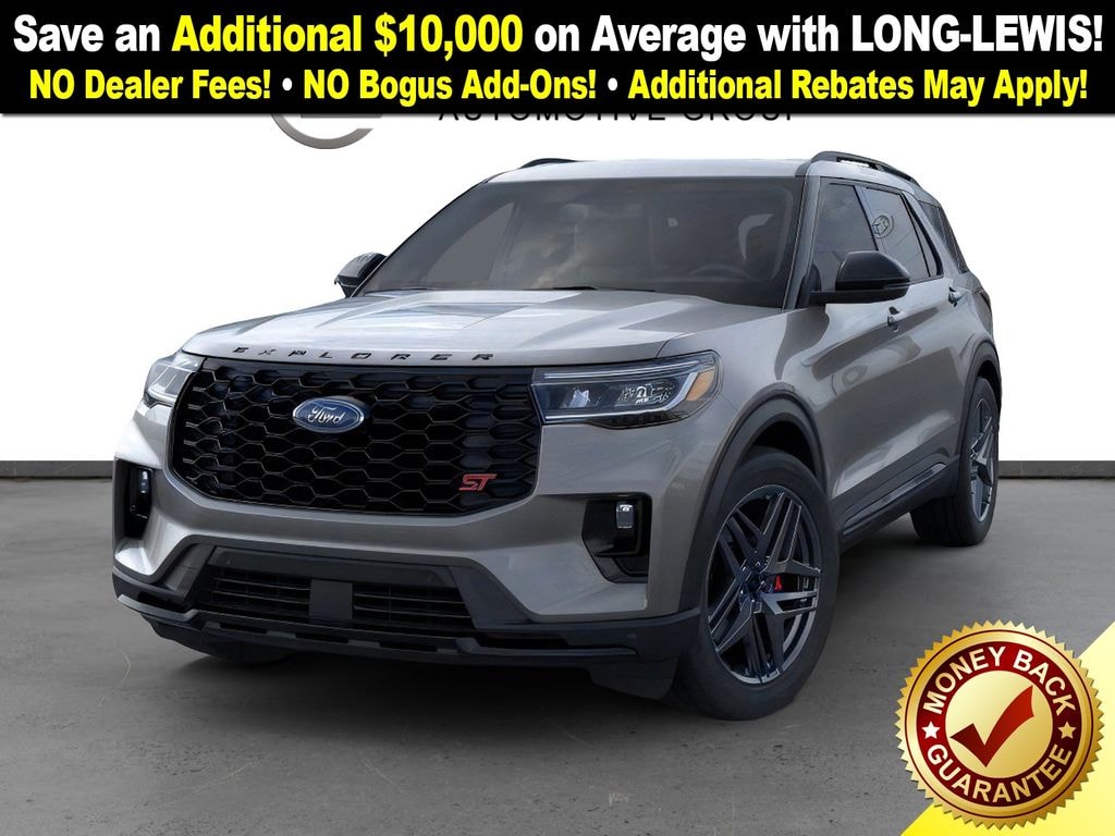Carbonized Gray Metallic 2025 Ford Explorer ST fctp 4WD 10-Speed Automatic 3.0L EcoBoost V6 4WD, 10 Speakers, 3.58 Non-Limited Slip Rear Axle, 3rd row seats: bench, 4-Wheel Disc Brakes, ABS brakes, Air Conditioning, Alloy wheels, AM/FM radio: SiriusXM with 360L, Apple CarPlay/Android Auto, Auto High-beam Headlights, Auto-dimming door mirrors, Auto-dimming Rear-View mirror, Automatic temperature control, B&O Sound System by Bang & Olufsen, Brake assist, Bumpers: body-color, Compass, Delay-off headlights, Driver door bin, Driver vanity mirror, Dual front impact airbags, Dual front side impact airbags, Electronic Stability Control, Emergency communication system: 911 Assist, Exterior Parking Camera Rear, Four wheel independent suspension, Front anti-roll bar, Front Bucket Seats, Front Center Armrest, Front dual zone A/C, Front fog lights, Front License Plate Bracket, Front reading lights, Fully automatic headlights, Garage door transmitter, Heated door mirrors, Heated front seats, Heated rear seats, Heated steering wheel, Heated/Ventilated Miko Sport Captain's Chairs, Illuminated entry, Knee airbag, Leather steering wheel, Low tire pressure warning, Memory seat, Multicontour Seats w/Front Active Motion, Navigation System, Occupant sensing airbag, Outside temperature display, Overhead airbag, Overhead console, Panic alarm, Panoramic Vista Roof w/Power Shade, Passenger door bin, Passenger vanity mirror, Power door mirrors, Power driver seat, Power Liftgate, Power passenger seat, Power steering, Power windows, Radio: B&O Sound System by Bang & Olufsen, Rain sensing wipers, Rear air conditioning, Rear anti-roll bar, Rear reading lights, Rear window defroster, Rear window wiper, Remote keyless entry, SecuriCode Keyless Entry Keypad, Security system, Speed control, Speed-sensing steering, Speed-Sensitive Wipers, Split folding rear seat, Spoiler, Sport steering wheel, Steering wheel mounted audio controls, Sun and Sound Package, Tachometer, Telescoping steering wheel, Tilt steering wheel, Traction control, Trip computer, Turn signal indicator mirrors, Variably intermittent wipers, Ventilated front seats, Wheels: 21" Magnetite-Painted Aluminum, 4WD.