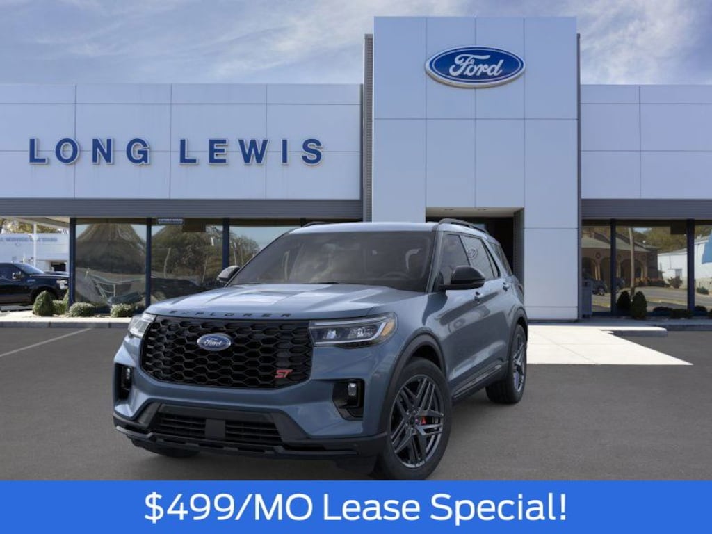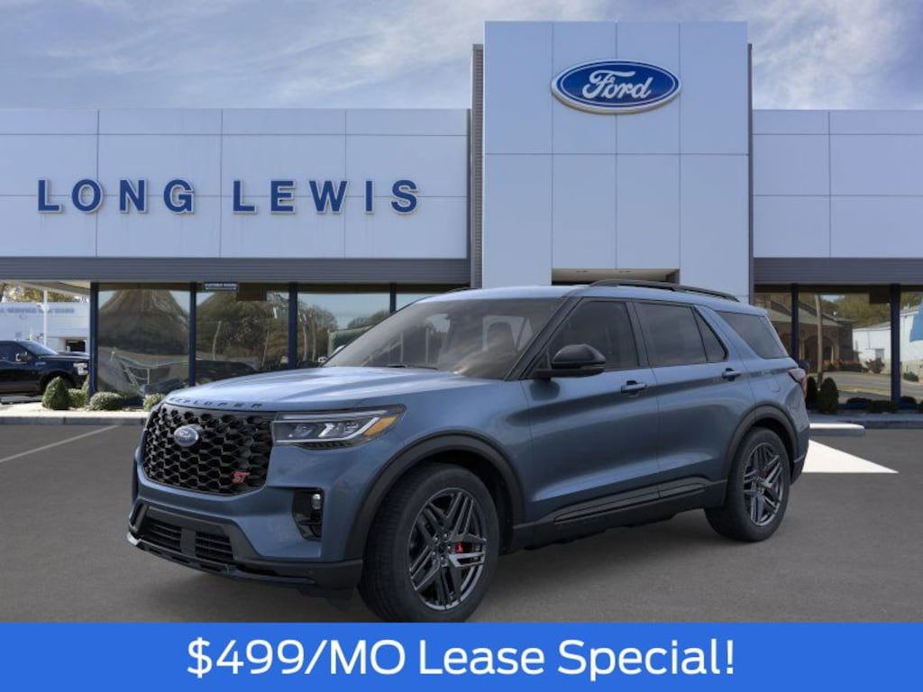 Vapor Blue Metallic 2025 Ford Explorer ST FCT 4WD 10-Speed Automatic 3.0L EcoBoost V6 4WD, 10 Speakers, 3.58 Non-Limited Slip Rear Axle, 3rd row seats: bench, 4-Wheel Disc Brakes, ABS brakes, Air Conditioning, Alloy wheels, AM/FM radio: SiriusXM with 360L, Apple CarPlay/Android Auto, Auto High-beam Headlights, Auto-dimming door mirrors, Auto-dimming Rear-View mirror, Automatic temperature control, B&O Sound System by Bang & Olufsen, Brake assist, Bumpers: body-color, Compass, Delay-off headlights, Driver door bin, Driver vanity mirror, Dual front impact airbags, Dual front side impact airbags, Electronic Stability Control, Emergency communication system: 911 Assist, Exterior Parking Camera Rear, Four wheel independent suspension, Front anti-roll bar, Front Bucket Seats, Front Center Armrest, Front dual zone A/C, Front fog lights, Front License Plate Bracket, Front reading lights, Fully automatic headlights, Garage door transmitter, Heated door mirrors, Heated front seats, Heated rear seats, Heated steering wheel, Heated/Ventilated Miko Sport Captain's Chairs, Illuminated entry, Knee airbag, Leather steering wheel, Low tire pressure warning, Memory seat, Multicontour Seats w/Front Active Motion, Navigation System, Occupant sensing airbag, Outside temperature display, Overhead airbag, Overhead console, Panic alarm, Panoramic Vista Roof w/Power Shade, Passenger door bin, Passenger vanity mirror, Power door mirrors, Power driver seat, Power Liftgate, Power passenger seat, Power steering, Power windows, Radio: B&O Sound System by Bang & Olufsen, Rain sensing wipers, Rear air conditioning, Rear anti-roll bar, Rear reading lights, Rear window defroster, Rear window wiper, Remote keyless entry, SecuriCode Keyless Entry Keypad, Security system, Speed control, Speed-sensing steering, Speed-Sensitive Wipers, Split folding rear seat, Spoiler, Sport steering wheel, Steering wheel mounted audio controls, Sun and Sound Package, Tachometer, Telescoping steering wheel, Tilt steering wheel, Traction control, Trip computer, Turn signal indicator mirrors, Variably intermittent wipers, Ventilated front seats, Wheels: 21" Magnetite-Painted Aluminum, 4WD.