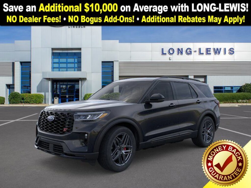 Dealer Discount of $3,562 off MSRP Agate Black Metallic 2025 Ford Explorer ST 4WD 10-Speed Automatic 3.0L EcoBoost V6 4WD, 10 Speakers, 3.58 Non-Limited Slip Rear Axle, 3rd row seats: bench, 4-Wheel Disc Brakes, ABS brakes, Air Conditioning, Alloy wheels, AM/FM radio: SiriusXM with 360L, Apple CarPlay/Android Auto, Auto High-beam Headlights, Auto-dimming door mirrors, Auto-dimming Rear-View mirror, Automatic temperature control, B&O Sound System by Bang & Olufsen, Brake assist, Bumpers: body-color, Compass, Delay-off headlights, Driver door bin, Driver vanity mirror, Dual front impact airbags, Dual front side impact airbags, Electronic Stability Control, Emergency communication system: 911 Assist, Equipment Group 400A Standard Package, Exterior Parking Camera Rear, Four wheel independent suspension, Front anti-roll bar, Front Bucket Seats, Front Center Armrest, Front dual zone A/C, Front fog lights, Front License Plate Bracket, Front reading lights, Fully automatic headlights, Garage door transmitter, Heated door mirrors, Heated front seats, Heated rear seats, Heated steering wheel, Heated/Ventilated Miko Sport Captain's Chairs, Illuminated entry, Knee airbag, Leather steering wheel, Low tire pressure warning, Memory seat, Multicontour Seats w/Front Active Motion, Navigation System, Occupant sensing airbag, Outside temperature display, Overhead airbag, Overhead console, Panic alarm, Panoramic Vista Roof w/Power Shade, Passenger door bin, Passenger vanity mirror, Power door mirrors, Power driver seat, Power Liftgate, Power passenger seat, Power steering, Power windows, Radio: B&O Sound System by Bang & Olufsen, Rain sensing wipers, Rear air conditioning, Rear anti-roll bar, Rear reading lights, Rear window defroster, Rear window wiper, Remote keyless entry, Security system, Speed control, Speed-sensing steering, Speed-Sensitive Wipers, Split folding rear seat, Spoiler, Sport steering wheel, Steering wheel mounted audio controls, Sun and Sound Package, Tachometer, Telescoping steering wheel, Tilt steering wheel, Traction control, Trip computer, Turn signal indicator mirrors, Variably intermittent wipers, Ventilated front seats, Wheels: 21" Magnetite-Painted Aluminum, 4WD. Price includes: $1500 - Bonus Customer Cash. Exp. 01/05/2026