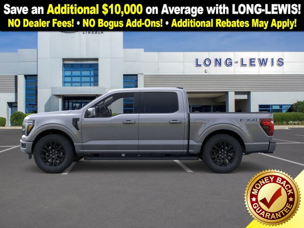 Dealer Discount of $6,183 off MSRP Carbonized Gray Metallic 2025 Ford F-150 Lariat fctp 4WD 10-Speed Automatic 3.5L V6 EcoBoost 4WD, 4 Pickup Box Tie-Down Plates, 4-Wheel Disc Brakes, 4x4 FX4 Off-Road Bodyside Decal, 6" Extended Running Boards, 8 Speakers, ABS brakes, ActiveX Trimmed Bucket Seats, Adjustable pedals, Air Conditioning, Alloy wheels, AM/FM radio: SiriusXM with 360L, Auto High-beam Headlights, Auto-dimming door mirrors, Auto-dimming Rear-View mirror, Automatic temperature control, Bed Utility Package, Brake assist, Bumpers: chrome, Chrome wheels, Compass, Console Worksurface, Delay-off headlights, Driver door bin, Driver vanity mirror, Dual front impact airbags, Dual front side impact airbags, Electronic Stability Control, Emergency communication system: SYNC 4 911 Assist, Front anti-roll bar, Front Bucket Seats, Front Center Armrest, Front dual zone A/C, Front fog lights, Front License Plate Bracket, Front reading lights, Front wheel independent suspension, Fully automatic headlights, FX4 Off-Road Package, Garage door transmitter, Heated door mirrors, Heated front seats, Heated steering wheel, Hill Descent Control, Illuminated entry, LED Box Lighting, Low tire pressure warning, Memory seat, Mobile Office Package, Monotube Rear Shocks, Navigation system: Connected Navigation, Occupant sensing airbag, Off-Road Tuned Front Shock Absorbers, Outside temperature display, Overhead airbag, Overhead console, Panic alarm, Partitioned Lockable Rear Storage, Passenger door bin, Passenger vanity mirror, Pedal memory, Power door mirrors, Power driver seat, Power passenger seat, Power steering, Power Tailgate, Power windows, Pro Access Tailgate, Radio data system, Radio: B&O Sound System by Bang & Olufsen, Rain sensing wipers, Rear reading lights, Rear seat center armrest, Rear step bumper, Rear window defroster, Remote keyless entry, Rock Crawl Mode, Security system, Speed control, Split folding rear seat, Steering wheel mounted audio controls, SYNC 4 w/Enhanced Voice Recognition, Tachometer, Telescoping steering wheel, Tilt steering wheel, Tow/Haul Package, Traction control, Tray Style Floor Liner w/o Carpet Mats, Trip computer, Turn signal indicator mirrors, Variably intermittent wipers, Ventilated front seats, Voltmeter, Wheels: 18" Chrome-Like PVD, Wireless Charging, 4WD.