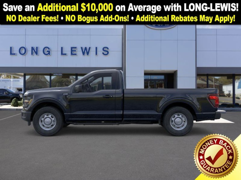 Agate Black Metallic 2025 Ford F-150 XL RWD 10-Speed Automatic 5.0L V8 4 Speakers, 4-Wheel Disc Brakes, ABS brakes, Air Conditioning, AM/FM radio: SiriusXM with 360L, Auto High-beam Headlights, Black Platform Running Boards, Brake assist, Cloth 40/20/40 Front Seat, Compass, Delay-off headlights, Driver door bin, Dual front impact airbags, Dual front side impact airbags, Electronic Locking w/3.73 Axle Ratio, Electronic Stability Control, Emergency communication system: SYNC 4 911 Assist, Front anti-roll bar, Front Center Armrest, Front License Plate Bracket, Front reading lights, Front wheel independent suspension, Fully automatic headlights, Heated door mirrors, Illuminated entry, Low tire pressure warning, Occupant sensing airbag, Outside temperature display, Overhead airbag, Overhead console, Panic alarm, Passenger door bin, Passenger vanity mirror, Power door mirrors, Power steering, Power windows, Radio data system, Radio: AM/FM Stereo w/SiriusXM 360L, Rear Parking Sensors, Rear step bumper, Remote keyless entry, Security system, Speed control, Steering wheel mounted audio controls, SYNC 4 w/Enhanced Voice Recognition, Tachometer, Telescoping steering wheel, Tilt steering wheel, Traction control, Trip computer, Variably intermittent wipers, Voltmeter, Wheels: 17" Silver Steel.