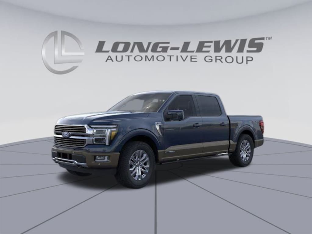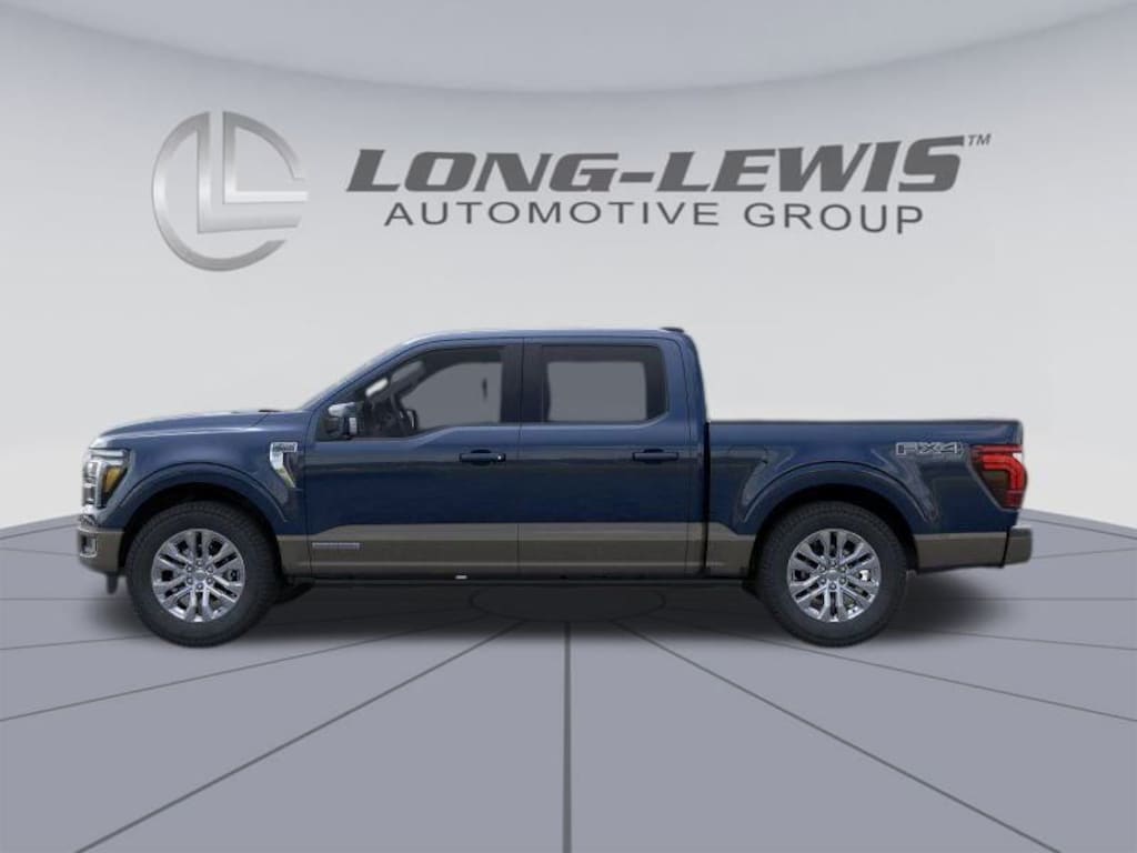 Antimatter Blue Metallic 2025 Ford F-150 King Ranch 4WD 10-Speed Automatic 3.5L PowerBoost Full-Hybrid V6 3.5L PowerBoost Full-Hybrid V6, 4WD, 14 Speakers, 4-Wheel Disc Brakes, 4x4 FX4 Off-Road Bodyside Decal, ABS brakes, Adjustable pedals, Air Conditioning, Alloy wheels, AM/FM radio: SiriusXM with 360L, Auto High-beam Headlights, Auto tilt-away steering wheel, Auto-dimming door mirrors, Auto-dimming Rear-View mirror, Automatic temperature control, Brake assist, Chrome wheels, Compass, Delay-off headlights, Driver door bin, Driver vanity mirror, Dual front impact airbags, Dual front side impact airbags, Electronic Stability Control, Emergency communication system: SYNC 4 911 Assist, Front anti-roll bar, Front Bucket Seats, Front Center Armrest, Front dual zone A/C, Front fog lights, Front License Plate Bracket, Front reading lights, Front wheel independent suspension, Fully automatic headlights, FX4 Off-Road Package, Garage door transmitter, Genuine wood dashboard insert, Heads-Up Display, Heated door mirrors, Heated front seats, Heated rear seats, Heated steering wheel, Hill Descent Control, Illuminated entry, King Ranch Multicontour Leather Bucket Seats, Leather steering wheel, Low tire pressure warning, Memory seat, Monotube Rear Shocks, Navigation system: Connected Navigation, Occupant sensing airbag, Off-Road Tuned Front Shock Absorbers, Outside temperature display, Overhead airbag, Overhead console, Panic alarm, Passenger door bin, Passenger vanity mirror, Pedal memory, Power door mirrors, Power driver seat, Power moonroof, Power passenger seat, Power steering, Power windows, Radio data system, Radio: B&O Unleashed Sound System by Bang & Olufsen, Rain sensing wipers, Rear reading lights, Rear seat center armrest, Rear step bumper, Rear window defroster, Remote keyless entry, Rock Crawl Mode, Security system, Speed control, Split folding rear seat, Steering wheel memory, Steering wheel mounted audio controls, SYNC 4 w/Enhanced Voice Recognition, Tachometer, Telescoping steering wheel, Tilt steering wheel, Traction control, Trip computer, Turn signal indicator mirrors, Variably intermittent wipers, Ventilated front seats, Voltmeter, Wheels: 20" Chrome-Like PVD, 3.5L PowerBoost Full-Hybrid V6, 4WD.