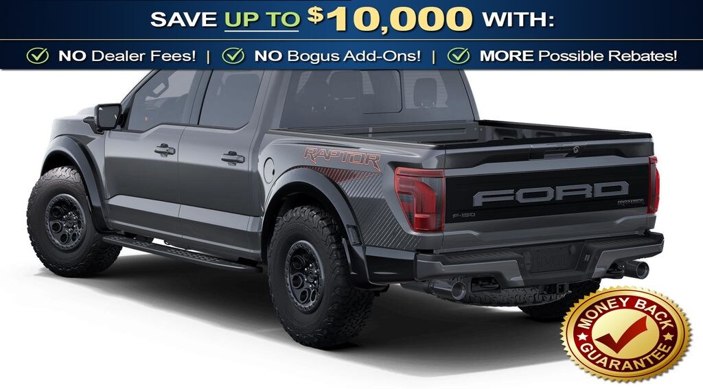 Dealer Discount of $3,498 off MSRP Carbonized Gray Metallic 2025 Ford F-150 Raptor NFT 4WD 10-Speed Automatic 3.5L V6 EcoBoost 4WD, 14 Speakers, 17" Cast Aluminum Wheels, 4-Wheel Disc Brakes, ABS brakes, Adjustable pedals, Air Conditioning, Alloy wheels, AM/FM radio: SiriusXM with 360L, Auto High-beam Headlights, Auto tilt-away steering wheel, Auto-dimming door mirrors, Auto-dimming Rear-View mirror, Automatic temperature control, Brake assist, Bumpers: body-color, Carbon Fiber Interior Appliques, Compass, Delay-off headlights, Driver door bin, Driver vanity mirror, Dual front impact airbags, Dual front side impact airbags, Dual Valve Shocks, Electronic Locking w/4.10 Axle Ratio, Electronic Stability Control, Emergency communication system: SYNC 4 911 Assist, Equipment Group 802A Raptor 37, Front anti-roll bar, Front Bucket Seats, Front Center Armrest, Front dual zone A/C, Front fog lights, Front License Plate Bracket, Front reading lights, Front wheel independent suspension, Fully automatic headlights, Garage door transmitter, Heads-Up Display, Heated door mirrors, Heated front seats, Heated rear seats, Heated steering wheel, Illuminated entry, Internet access capable: FordPass Connect 5G, Lane Departure Warning System, Leather steering wheel, Leather Trimmed Seats, Low tire pressure warning, Memory seat, Modular Front Bumper, Navigation system: Connected Navigation, Occupant sensing airbag, Outside temperature display, Overhead airbag, Overhead console, Panic alarm, Passenger door bin, Passenger vanity mirror, Pedal memory, Power door mirrors, Power driver seat, Power passenger seat, Power steering, Power windows, Radio data system, Radio: B&O Unleashed Sound System by Bang & Olufsen, Rain sensing wipers, Rear reading lights, Rear step bumper, Rear window defroster, RECARO Alcantara Suede Front Seats, RECARO w/Code Orange Stitching Front Seats, Remote keyless entry, Security system, Speed control, Speed-sensing steering, Split folding rear seat, Steering wheel memory, Steering wheel mounted audio controls, SYNC 4 w/Enhanced Voice Recognition, Tachometer, Telescoping steering wheel, Tilt steering wheel, Traction control, Trip computer, Turn signal indicator mirrors, Twin Panel Moonroof, Variably intermittent wipers, Ventilated front seats, Wheels: Raptor 37 Unique 17" Cast Aluminum, 4WD.