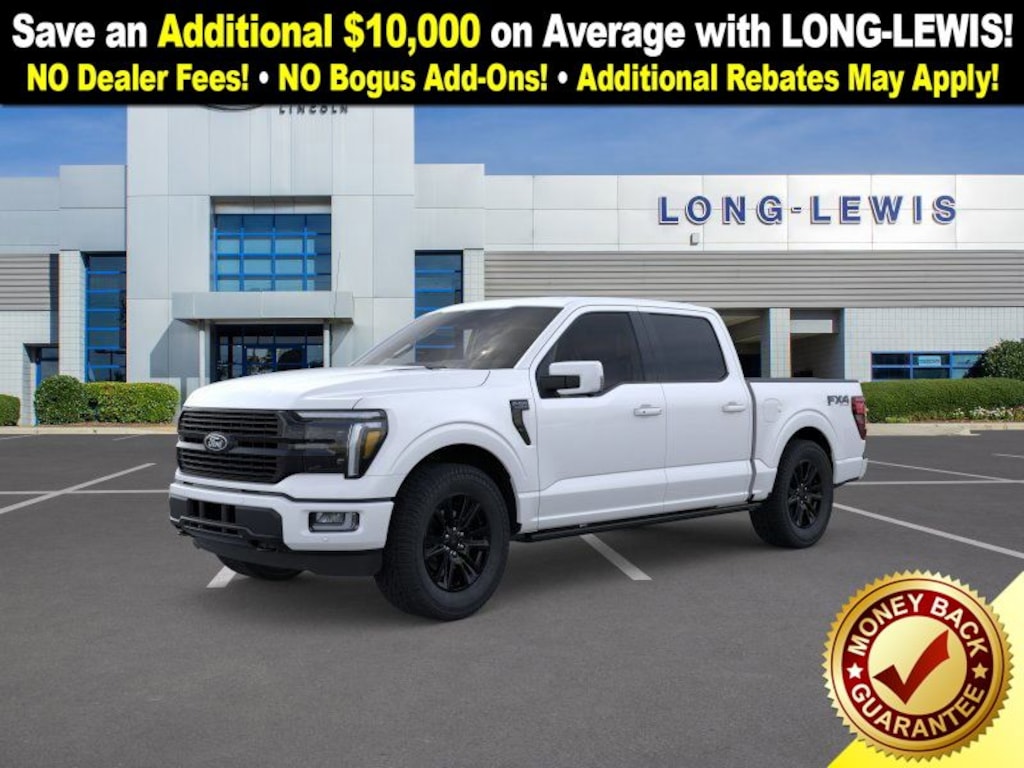 Dealer Discount of $4,926 off MSRP Star White Metallic Tri-Coat 2025 Ford F-150 Platinum fctp 4WD 10-Speed Automatic 3.5L V6 EcoBoost 4WD, 4-Wheel Disc Brakes, 4x4 FX4 Off-Road Bodyside Decal, 8 Speakers, ABS brakes, Adjustable pedals, Air Conditioning, Alloy wheels, AM/FM radio: SiriusXM with 360L, Auto High-beam Headlights, Auto tilt-away steering wheel, Auto-dimming door mirrors, Auto-dimming Rear-View mirror, Automatic temperature control, Brake assist, Bumpers: body-color, Compass, Delay-off headlights, Driver door bin, Driver vanity mirror, Dual front impact airbags, Dual front side impact airbags, Electronic Locking w/3.55 Axle Ratio, Electronic Stability Control, Emergency communication system: SYNC 4 911 Assist, Equipment Group 701A Standard, Front anti-roll bar, Front Bucket Seats, Front Center Armrest, Front dual zone A/C, Front fog lights, Front License Plate Bracket, Front reading lights, Front wheel independent suspension, Fully automatic headlights, FX4 Off-Road Package, Garage door transmitter, Heated door mirrors, Heated front seats, Heated rear seats, Heated steering wheel, Hill Descent Control, Illuminated entry, Internet access capable: FordPass Connect 5G, Leather steering wheel, Low tire pressure warning, Memory seat, Monotube Rear Shocks, Navigation system: Connected Navigation, Occupant sensing airbag, Off-Road Tuned Front Shock Absorbers, Outside temperature display, Overhead airbag, Overhead console, Panic alarm, Passenger door bin, Passenger vanity mirror, Pedal memory, Power door mirrors, Power driver seat, Power passenger seat, Power steering, Power windows, Radio data system, Radio: B&O Sound System by Bang & Olufsen, Rain sensing wipers, Rear reading lights, Rear seat center armrest, Rear step bumper, Rear window defroster, Remote keyless entry, Rock Crawl Mode, Security system, Speed control, Split folding rear seat, Steering wheel memory, Steering wheel mounted audio controls, SYNC 4 w/Enhanced Voice Recognition, Tachometer, Telescoping steering wheel, Tilt steering wheel, Traction control, Tray Style Floor Liner, Trip computer, Turn signal indicator mirrors, Unique Multi-Contour Leather Bucket Seats, Variably intermittent wipers, Ventilated front seats, Voltmeter, Wheels: 20" Painted Gloss Ebony Black, 4WD. Price includes: $1000 - Final Days Mega Bonus Cash. Exp. 01/02/2026 $2000 - Retail Customer Cash. Exp. 01/05/2026
