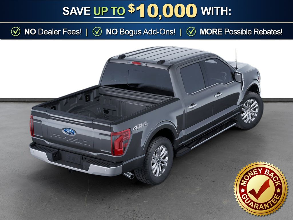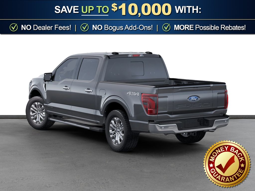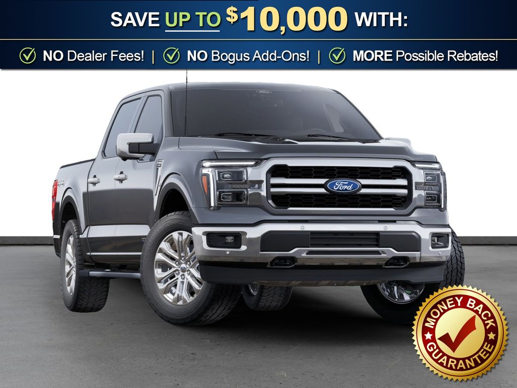 Carbonized Gray Metallic 2025 Ford F-150 Lariat NFT 4WD 10-Speed Automatic 3.5L PowerBoost Full-Hybrid V6 3.5L PowerBoost Full-Hybrid V6, 4WD, 4 Pickup Box Tie-Down Plates, 4-Wheel Disc Brakes, 4x4 FX4 Off-Road Bodyside Decal, 6" Extended Running Boards, 8 Speakers, ABS brakes, ActiveX Trimmed Bucket Seats, Adjustable pedals, Air Conditioning, Alloy wheels, AM/FM radio: SiriusXM with 360L, Auto High-beam Headlights, Auto-dimming door mirrors, Auto-dimming Rear-View mirror, Automatic temperature control, Bed Utility Package, Brake assist, Bumpers: chrome, Chrome wheels, Compass, Delay-off headlights, Driver door bin, Driver vanity mirror, Dual front impact airbags, Dual front side impact airbags, Electronic Stability Control, Emergency communication system: SYNC 4 911 Assist, Equipment Group 502A High, Front anti-roll bar, Front Bucket Seats, Front Center Armrest, Front dual zone A/C, Front fog lights, Front License Plate Bracket, Front reading lights, Front wheel independent suspension, Fully automatic headlights, FX4 Off-Road Package, Garage door transmitter, Heated door mirrors, Heated front seats, Heated steering wheel, Hill Descent Control, Illuminated entry, Internet access capable: FordPass Connect 5G, LED Box Lighting, Low tire pressure warning, Memory seat, Monotube Rear Shocks, Navigation system: Connected Navigation, Occupant sensing airbag, Off-Road Tuned Front Shock Absorbers, Outside temperature display, Overhead airbag, Overhead console, Panic alarm, Passenger door bin, Passenger vanity mirror, Pedal memory, Power door mirrors, Power driver seat, Power passenger seat, Power steering, Power Tailgate, Power windows, Pro Access Tailgate, Radio data system, Radio: B&O Sound System by Bang & Olufsen, Rain sensing wipers, Rear reading lights, Rear seat center armrest, Rear step bumper, Rear window defroster, Remote keyless entry, Rock Crawl Mode, Security system, Speed control, Split folding rear seat, Steering wheel mounted audio controls, SYNC 4 w/Enhanced Voice Recognition, Tachometer, Telescoping steering wheel, Tilt steering wheel, Traction control, Tray Style Floor Liner w/o Carpet Mats, Trip computer, Turn signal indicator mirrors, Variably intermittent wipers, Ventilated front seats, Voltmeter, Wheels: 18" Chrome-Like PVD, Wheels: 20" Chrome-Like PVD, 3.5L PowerBoost Full-Hybrid V6, 4WD.