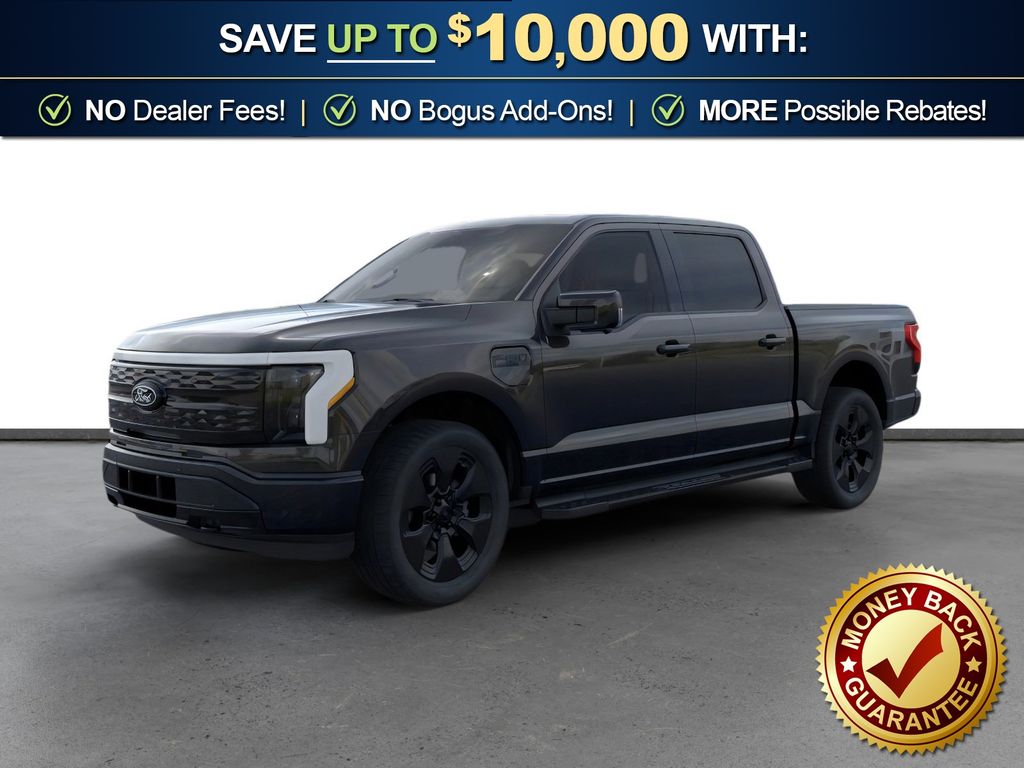 Dealer Discount of $5,194 off MSRP Priced below KBB Fair Purchase Price! Agate Black Metallic 2025 Ford F-150 Lightning Platinum NFT AWD Single-Speed Automatic Electric Motor 14 Speakers, 4-Wheel Disc Brakes, ABS brakes, Adjustable pedals, Air Conditioning, Alloy wheels, Auto High-beam Headlights, Auto tilt-away steering wheel, Auto-dimming door mirrors, Auto-dimming Rear-View mirror, Automatic temperature control, Brake assist, Bumpers: body-color, Compass, Dark Elements Package, Delay-off headlights, Driver door bin, Driver vanity mirror, Dual front impact airbags, Dual front side impact airbags, Electronic Stability Control, Emergency communication system: SYNC 4 911 Assist, Equipment Group 710A Standard, Four wheel independent suspension, Front anti-roll bar, Front Bucket Seats, Front Center Armrest, Front dual zone A/C, Front reading lights, Fully automatic headlights, Heated door mirrors, Heated front seats, Heated rear seats, Heated steering wheel, Illuminated entry, Illuminated running boards, Internet access capable: FordPass Connect 4G, Knee airbag, Low tire pressure warning, Memory seat, Mobile Power Cord (120/240V), Navigation system: Connected Navigation, Occupant sensing airbag, Outside temperature display, Overhead airbag, Overhead console, Panic alarm, Passenger door bin, Passenger vanity mirror, Pedal memory, Power door mirrors, Power driver seat, Power moonroof, Power passenger seat, Power steering, Power windows, Premium Nirvana Leather Bucket Seats, Radio data system, Radio: B&O Unleashed Sound System by Bang & Olufsen, Rain sensing wipers, Rear anti-roll bar, Rear reading lights, Rear seat center armrest, Rear step bumper, Rear window defroster, Remote keyless entry, Security system, Speed control, Speed-sensing steering, Split folding rear seat, Steering wheel memory, Steering wheel mounted audio controls, SYNC 4A w/Enhanced Voice Recognition, Telescoping steering wheel, Tilt steering wheel, Tough Bed Spray-In Bedliner, Traction control, Trip computer, Turn signal indicator mirrors, Variably intermittent wipers, Ventilated front seats, Wheels: 22" Black Painted Aluminum, Wheels: 22" Bright Machined w/Ebony Black.