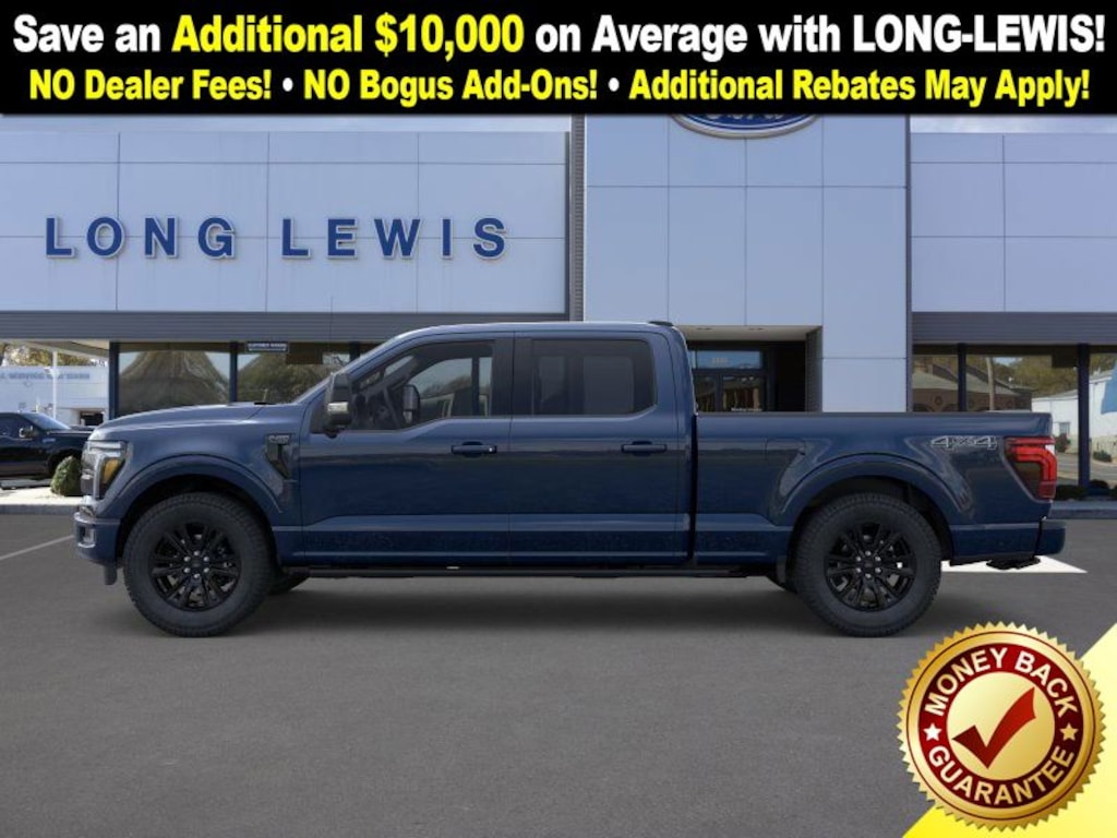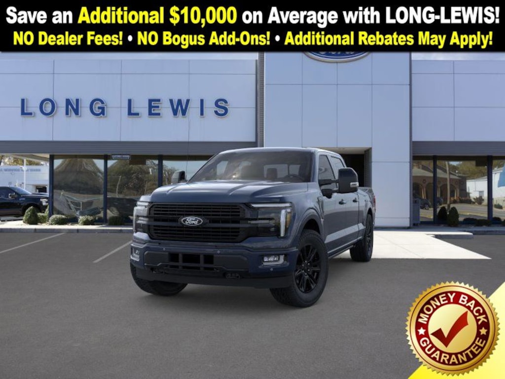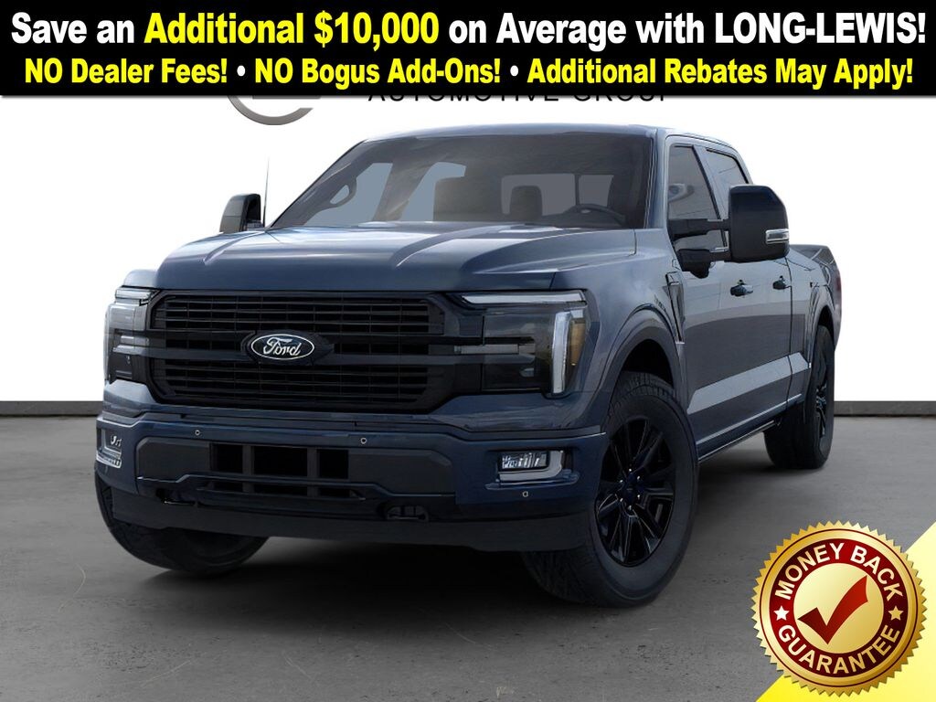 Antimatter Blue Metallic 2025 Ford F-150 Platinum NFT 4WD 10-Speed Automatic 3.5L V6 EcoBoost 4WD, 4-Wheel Disc Brakes, 8 Speakers, ABS brakes, Adjustable pedals, Air Conditioning, Alloy wheels, AM/FM radio: SiriusXM with 360L, Auto High-beam Headlights, Auto tilt-away steering wheel, Auto-dimming door mirrors, Auto-dimming Rear-View mirror, Automatic temperature control, Brake assist, Bumpers: body-color, Compass, Delay-off headlights, Driver door bin, Driver vanity mirror, Dual front impact airbags, Dual front side impact airbags, Electronic Locking w/3.55 Axle Ratio, Electronic Stability Control, Emergency communication system: SYNC 4 911 Assist, Front anti-roll bar, Front Bucket Seats, Front Center Armrest, Front dual zone A/C, Front fog lights, Front reading lights, Front wheel independent suspension, Fully automatic headlights, Garage door transmitter, Heated door mirrors, Heated front seats, Heated rear seats, Heated steering wheel, Illuminated entry, Internet access capable: FordPass Connect 5G, Leather steering wheel, Low tire pressure warning, Memory seat, Navigation system: Connected Navigation, Occupant sensing airbag, Outside temperature display, Overhead airbag, Overhead console, Panic alarm, Passenger door bin, Passenger vanity mirror, Pedal memory, Power door mirrors, Power driver seat, Power passenger seat, Power steering, Power windows, Radio data system, Radio: B&O Sound System by Bang & Olufsen, Rain sensing wipers, Rear reading lights, Rear seat center armrest, Rear step bumper, Rear window defroster, Remote keyless entry, Security system, Speed control, Split folding rear seat, Steering wheel memory, Steering wheel mounted audio controls, SYNC 4 w/Enhanced Voice Recognition, Tachometer, Telescoping steering wheel, Tilt steering wheel, Traction control, Trip computer, Turn signal indicator mirrors, Unique Multi-Contour Leather Bucket Seats, Variably intermittent wipers, Ventilated front seats, Voltmeter, Wheels: 20" Painted Gloss Ebony Black, 4WD.