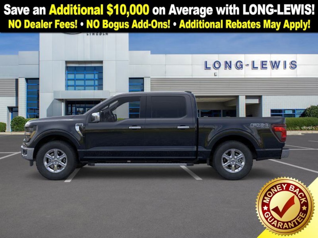 Dealer Discount of $6,200 off MSRP Agate Black Metallic 2025 Ford F-150 XLT fctp 4WD 10-Speed Automatic 3.5L V6 EcoBoost 4WD, 4 Pickup Box Tie-Down Plates, 4-Wheel Disc Brakes, 6 Speakers, ABS brakes, Air Conditioning, Alloy wheels, AM/FM radio: SiriusXM with 360L, Auto High-beam Headlights, Bed Utility Package, Brake assist, Bumpers: chrome, Chrome wheels, Cloth 40/20/40 Front Seat, Cloth 40/Console/40 Front Seats, Compass, Delay-off headlights, Driver door bin, Driver vanity mirror, Dual front impact airbags, Dual front side impact airbags, Electronic Stability Control, Emergency communication system: SYNC 4 911 Assist, Equipment Group 302A Mid, Front anti-roll bar, Front Center Armrest, Front fog lights, Front License Plate Bracket, Front reading lights, Front wheel independent suspension, Fully automatic headlights, FX4 Off-Road Package, Heated door mirrors, Illuminated entry, Internet access capable: FordPass Connect 5G, LED Box Lighting, Low tire pressure warning, Occupant sensing airbag, Outside temperature display, Overhead airbag, Overhead console, Panic alarm, Passenger door bin, Passenger vanity mirror, Power door mirrors, Power steering, Power windows, Radio data system, Radio: AM/FM Stereo w/SiriusXM 360L, Rear Parking Sensors, Rear reading lights, Rear step bumper, Rear window defroster, Remote keyless entry, Security system, Speed control, Split folding rear seat, Steering wheel mounted audio controls, SYNC 4 w/Enhanced Voice Recognition, Tachometer, Tailgate Step w/Tailgate Work Surface, Telescoping steering wheel, Tilt steering wheel, Tow/Haul Package, Traction control, Trip computer, Variably intermittent wipers, Voltmeter, Wheels: 18" Chrome-Like PVD, 4WD.