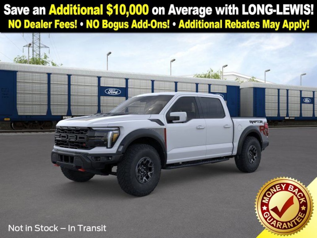 Space White Metallic 2025 Ford F-150 Raptor 4WD 10-Speed Automatic 5.2L V8 4WD, 14 Speakers, 17" Cast Aluminum Wheels, 4-Wheel Disc Brakes, ABS brakes, Adjustable pedals, Air Conditioning, Alloy wheels, AM/FM radio: SiriusXM with 360L, Auto High-beam Headlights, Auto tilt-away steering wheel, Auto-dimming door mirrors, Auto-dimming Rear-View mirror, Automatic temperature control, Brake assist, Bumpers: body-color, Compass, Delay-off headlights, Driver door bin, Driver vanity mirror, Dual front impact airbags, Dual front side impact airbags, Electronic Locking w/4.10 Axle Ratio, Electronic Stability Control, Emergency communication system: SYNC 4 911 Assist, Engine Block Heater, Front anti-roll bar, Front Bucket Seats, Front Center Armrest, Front dual zone A/C, Front fog lights, Front License Plate Bracket, Front reading lights, Front wheel independent suspension, Fully automatic headlights, Garage door transmitter, Heads-Up Display, Heated door mirrors, Heated front seats, Heated rear seats, Heated steering wheel, Illuminated entry, Lane Departure Warning System, Leather steering wheel, Leather Trimmed Seats, Low tire pressure warning, Memory seat, Navigation system: Connected Navigation, Occupant sensing airbag, Outside temperature display, Overhead airbag, Overhead console, Panic alarm, Passenger door bin, Passenger vanity mirror, Pedal memory, Power door mirrors, Power driver seat, Power passenger seat, Power steering, Power windows, Radio data system, Radio: B&O Unleashed Sound System by Bang & Olufsen, Rain sensing wipers, Rear reading lights, Rear step bumper, Rear window defroster, RECARO w/Code Orange Stitching Front Seats, Remote keyless entry, Security system, Speed control, Speed-sensing steering, Split folding rear seat, Steering wheel memory, Steering wheel mounted audio controls, SYNC 4 w/Enhanced Voice Recognition, Tachometer, Telescoping steering wheel, Tilt steering wheel, Tough Bed Spray-In Bedliner, Traction control, Trip computer, Turn signal indicator mirrors, Twin Panel Moonroof, Variably intermittent wipers, Ventilated front seats, 4WD.