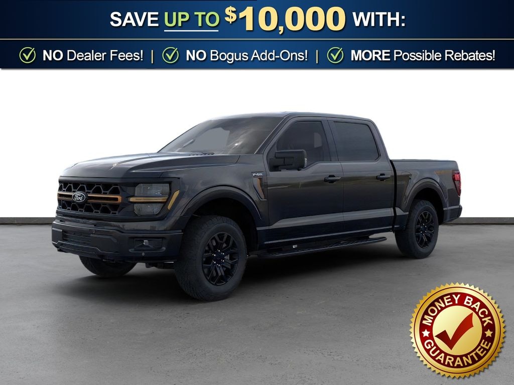 Dealer Discount of $5,554 off MSRP Priced below KBB Fair Purchase Price! Agate Black Metallic 2025 Ford F-150 Tremor fctp 4WD 10-Speed Automatic 5.0L V8 4WD, 4 Pickup Box Tie-Down Plates, 4-Wheel Disc Brakes, 8 Speakers, ABS brakes, Adjustable pedals, Air Conditioning, Alloy wheels, AM/FM radio: SiriusXM with 360L, Auto High-beam Headlights, Auto-dimming door mirrors, Auto-dimming Rear-View mirror, Automatic temperature control, Bed Utility Package, Brake assist, Bumpers: body-color, Compass, Delay-off headlights, Driver door bin, Driver vanity mirror, Dual front impact airbags, Dual front side impact airbags, Electronic Locking w/3.73 Axle Ratio, Electronic Stability Control, Emergency communication system: SYNC 4 911 Assist, Front anti-roll bar, Front Bucket Seats, Front Center Armrest, Front dual zone A/C, Front fog lights, Front License Plate Bracket, Front reading lights, Front wheel independent suspension, Fully automatic headlights, GVWR: 7,100 lbs Payload Package, Heated door mirrors, Heated front seats, Illuminated entry, Integrated Trailer Brake Controller, LED Box Lighting, Low tire pressure warning, Navigation system: Connected Navigation, Occupant sensing airbag, Outside temperature display, Overhead airbag, Overhead console, Panic alarm, Passenger door bin, Passenger vanity mirror, Power door mirrors, Power driver seat, Power passenger seat, Power steering, Power Tailgate, Power windows, Radio data system, Radio: B&O Sound System by Bang & Olufsen, Rear reading lights, Rear step bumper, Rear window defroster, Remote keyless entry, Security system, Speed control, Split folding rear seat, Steering wheel mounted audio controls, SYNC 4 w/Enhanced Voice Recognition, Tachometer, Tailgate Step w/Tailgate Work Surface, Telescoping steering wheel, Tilt steering wheel, Tow/Haul Package, Traction control, Trip computer, Turn signal indicator mirrors, Unique Sport Cloth 40/Console/40 Power Front Seat, Variably intermittent wipers, Voltmeter, Wheels: 18" Alloy w/Dark Matte Finish, 4WD. Price includes: $1000 - Truck Month Retail Bonus Cash. Exp. 03/31/2026 $2000 - Retail Customer Cash. Exp. 03/31/2026