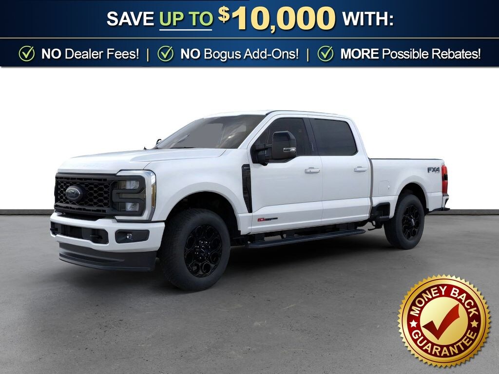 Dealer Discount of $7,710 off MSRP Star White Metallic Tri-Coat 2025 Ford F-250SD Lariat NFT 4WD 10-Speed Automatic 6.7L High Output Power Stroke V8 Diesel 4WD, 4-Way Adjustable Headrests, 4-Wheel Disc Brakes, 410 Amp Dual Alternators, 6" Ebony Black Angular Running Boards, 8 Speakers, ABS brakes, Adaptive Cruise Control with Stop-and-Go, Adjustable pedals, Air Conditioning, Alloy wheels, AM/FM radio: SiriusXM with 360L, Auto High-beam Headlights, Auto-dimming Rear-View mirror, Automatic High Beam, Automatic temperature control, Black Appearance Package, Black Painted Front Grille Surround, BLIS with Cross-Traffic Alert, Body Color Front and Rear Bumpers, Brake assist, Bumpers: chrome, Compass, Delay-off headlights, Driver door bin, Driver vanity mirror, Dual AGM 68 AH Battery, Dual front impact airbags, Dual front side impact airbags, Ebony Black Painted Mirror Caps, Electronic Stability Control, Emergency communication system: SYNC 4 911 Assist, Engine Block Heater, Flow-Through Console, Front ActiveX Trimmed 40/Console/40 Seats, Front and Rear Parking Sensors, Front anti-roll bar, Front Bucket Seats, Front Center Armrest, Front dual zone A/C, Front fog lights, Front reading lights, Fully automatic headlights, FX4 Off-Road Package, Garage door transmitter, GVWR: F-250 >10K Package, Head-Up Display, Heated door mirrors, Heated front seats, Heated rear seats, Heated steering wheel, High Capacity 11.6" Axle Upgrade Package, Hill Descent Control, Illuminated entry, Internet access capable: FordPass Connect 5G, Lane-Keeping System, Lariat Ultimate Package, Low tire pressure warning, Memory seat, Navigation System, Off-Road Specifically Tuned Shock Absorbers, Order Code 608A, Outside temperature display, Overhead airbag, Overhead console, Panic alarm, Passenger door bin, Passenger vanity mirror, Pedal memory, Post-Collision Braking, Power door mirrors, Power driver seat, Power passenger seat, Power steering, Power windows, Power-Deployable Running Boards, Power-Sliding Rear-Window with Defrost, Pre-Collision Assist, Privacy Glass, Pro Trailer Backup Assist, Pro Trailer Hitch Assist, Radio: B&O Sound System by Bang and Olufsen, Radio: B&O Unleashed Sound System by Bang & Olufsen, Rain sensing wipers, Rapid-Heat Supplemental Cab Heater, Rear Parking Sensors, Rear reading lights, Rear seat center armrest, Rear step bumper, Rear window defroster, Remote keyless entry, Security system, SiriusXM Radio with 360L, Speed control, Split folding rear seat, Steering wheel mounted audio controls, SYNC 4 with Enhanced Voice Recognition, Tachometer, Tailgate Step and Handle, Telescoping steering wheel, Tilt steering wheel, Traction control, Trip computer, Turn signal indicator mirrors, Twin Panel Power Moonroof, Unique FX4 Off-Road Box Decal, Upfitter Switches (6), Variably intermittent wipers, Ventilated front seats, Wheels: 18" Bright Machined and Carbonized Gray Aluminum, 4WD.