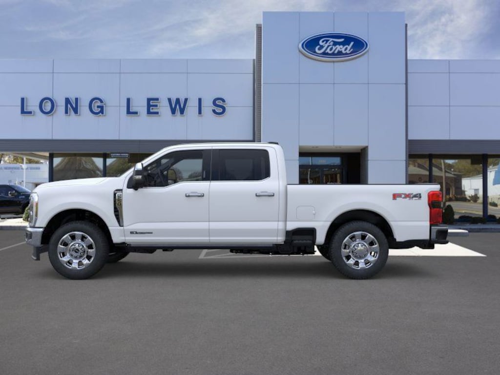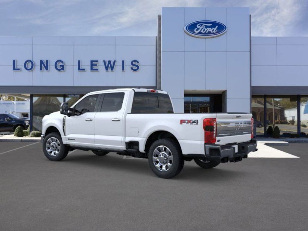 Star White Metallic Tri-Coat 2025 Ford F-250SD King Ranch 4WD 10-Speed Automatic Power Stroke 6.7L V8 DI 32V OHV Turbodiesel 4WD, 3.73 Axle Ratio, 4-Wheel Disc Brakes, 410 Amp Dual Alternators, ABS brakes, Adjustable pedals, Air Conditioning, Alloy wheels, AM/FM radio: SiriusXM with 360L, Auto High-beam Headlights, Auto-dimming Rear-View mirror, Automatic temperature control, Brake assist, Chrome Door Handles, Chrome Exhaust Tip, Chrome Package, Compass, Delay-off headlights, Driver door bin, Driver vanity mirror, Dual front impact airbags, Dual front side impact airbags, Electronic Stability Control, Electronic-Locking w/3.31 Axle Ratio, Emergency communication system: SYNC 4 911 Assist, Engine Block Heater, F-250 >10K GVWR Package, Flow-Through Console, Front anti-roll bar, Front Bucket Seats, Front Center Armrest, Front dual zone A/C, Front fog lights, Front reading lights, Fully automatic headlights, FX4 Off-Road Package, Garage door transmitter, Heated door mirrors, Heated front seats, Heated rear seats, Heated steering wheel, High Capacity 11.6" Axle Upgrade Package, Hill Descent Control, Illuminated entry, Low tire pressure warning, Memory seat, Navigation System, Off-Road Specifically Tuned Shock Absorbers, Outside temperature display, Overhead airbag, Overhead console, Panic alarm, Passenger door bin, Passenger vanity mirror, Pedal memory, Power door mirrors, Power driver seat, Power passenger seat, Power steering, Power windows, Power-Deployable Running Boards, Rain sensing wipers, Rapid-Heat Supplemental Cab Heater, Rear reading lights, Rear seat center armrest, Rear step bumper, Rear window defroster, Remote keyless entry, Security system, SiriusXM Radio w/360L, Speed control, Split folding rear seat, Steering wheel mounted audio controls, SYNC 4 w/Enhanced Voice Recognition, Tachometer, Telescoping steering wheel, Tilt steering wheel, Traction control, Trip computer, Turn signal indicator mirrors, Twin Panel Power Moonroof, Unique Chrome Mirror Caps, Unique FX4 Off-Road Box Decal, Upfitter Switches (6), Variably intermittent wipers, Ventilated front seats, Wheels: 20" Chrome PVD Aluminum, 4WD.