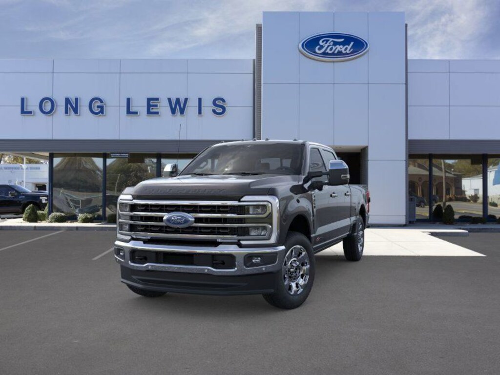 Agate Black Metallic 2025 Ford F-350SD King Ranch 4WD 10-Speed Automatic 6.7L High Output Power Stroke V8 Diesel 4WD, ABS brakes, Alloy wheels, Compass, Electronic Stability Control, Front dual zone A/C, Heated door mirrors, Heated front seats, Heated rear seats, Illuminated entry, Low tire pressure warning, Navigation System, Remote keyless entry, Traction control, 14 Speakers, 4-Wheel Disc Brakes, Adjustable pedals, Air Conditioning, AM/FM radio: SiriusXM with 360L, Auto High-beam Headlights, Auto tilt-away steering wheel, Auto-dimming Rear-View mirror, Automatic temperature control, Brake assist, Delay-off headlights, Driver door bin, Driver vanity mirror, Dual front impact airbags, Dual front side impact airbags, Electronic-Locking w/3.73 Axle Ratio, Emergency communication system: SYNC 4 911 Assist, Flow-Through Console, Front anti-roll bar, Front Bucket Seats, Front Center Armrest, Front fog lights, Front reading lights, Fully automatic headlights, Garage door transmitter, Heads-Up Display, Heated steering wheel, Leather steering wheel, Memory seat, Outside temperature display, Overhead airbag, Overhead console, Panic alarm, Passenger door bin, Passenger vanity mirror, Pedal memory, Power door mirrors, Power driver seat, Power passenger seat, Power steering, Power windows, Radio: B&O Unleashed Sound System by Bang & Olufsen, Rain sensing wipers, Rear reading lights, Rear seat center armrest, Rear step bumper, Rear window defroster, Security system, SiriusXM Radio w/360L, Speed control, Split folding rear seat, Steering wheel memory, Steering wheel mounted A/C controls, Steering wheel mounted audio controls, SYNC 4 w/Enhanced Voice Recognition, Tachometer, Telescoping steering wheel, Tilt steering wheel, Trip computer, Turn signal indicator mirrors, Unique King Ranch Leather 40/Console/40 Seats, Variably intermittent wipers, Ventilated front seats, Wheels: 20" Bright Machined Cast Aluminum, 4WD, ABS brakes, Alloy wheels, Compass, Electronic Stability Control, Front dual zone A/C, Heated door mirrors, Heated front seats, Heated rear seats, Illuminated entry, Low tire pressure warning, Navigation System, Remote keyless entry, Traction control.