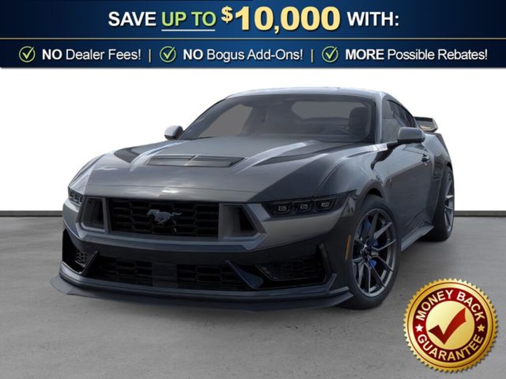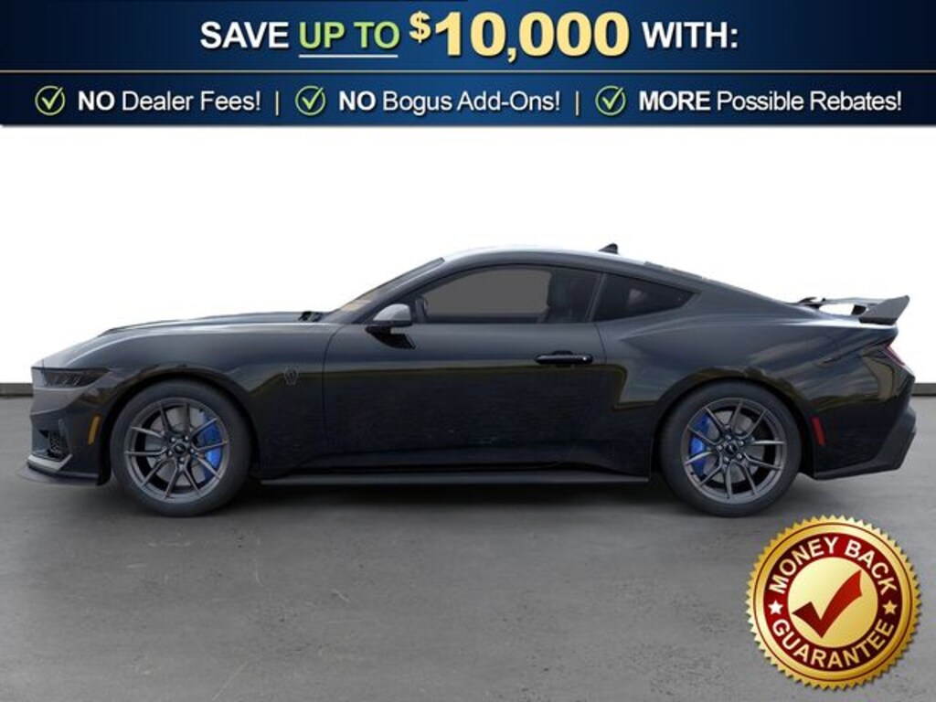 New Price! Shadow Black 2025 Ford Mustang Dark Horse NFC RWD 10-Speed Automatic 5.0L V8 DOHC 32V 12 Speakers, 4-Wheel Disc Brakes, ABS brakes, Active Anti-Theft System, Adaptive suspension, Air Conditioning, Alloy wheels, Aluminum Foot Pedals, AM/FM radio: SiriusXM with 360L, AM/FM Stereo, Approach Detection, Auto High-beam Headlights, Auto-dimming Rear-View mirror, Automatic temperature control, B&O Sound System by Bang & Olufsen, Brake assist, Bumpers: body-color, Cloth/Vinyl Climate-Controlled Bucket Seats, Cloth/Vinyl Heated Bucket Seats, Compass, Dark Horse Appearance Package, Dark Horse Handling Package, Delay-off headlights, Driver door bin, Driver Seat & Mirrors Memory, Driver vanity mirror, Dual front impact airbags, Dual front side impact airbags, Electronic Stability Control, Emergency communication system: 911 Assist, Equipment Group 700A Deluxe Package, Exterior Parking Camera Rear, Four wheel independent suspension, Front anti-roll bar, Front Bucket Seats, Front Center Armrest, Front dual zone A/C, Front reading lights, Front Towing Hooks, Fully automatic headlights, HD Radio, Heated front seats, Heated steering wheel, Illuminated entry, Internet access capable: FordPass Connect, Knee airbag, Locking Center Console, Low tire pressure warning, Magnetic Damping System, Navigation system: Connected Navigation, Notorious Blue Painted Brake Calipers, Occupant sensing airbag, Outside temperature display, Overhead airbag, Overhead console, Painted Black Roof, Panic alarm, Passenger door bin, Passenger vanity mirror, Performance Front Aero Splitter, Performance Rear Spoiler w/Gurney Flap, Power door mirrors, Power driver seat, Power passenger seat, Power steering, Power windows, Radio data system, Rain sensing wipers, Rear anti-roll bar, Rear Parking Sensors, Rear window defroster, Remote keyless entry, Security Package, SiriusXM w/360L, Speed control, Speed-sensing steering, Speed-Sensitive Wipers, Split folding rear seat, Spoiler, Sport steering wheel, Steering wheel mounted audio controls, SYNC 4, Tachometer, Telescoping steering wheel, Tilt steering wheel, Traction control, Trip computer, Unique Hood Graphic, Universal Garage Door Opener (UGDO), Variably intermittent wipers, Voltmeter, Wheel Locking Kit, Wheels: 19" x 10.5" Fr/19" x 11" Rr Tarnished Alum, Wheels: 19" x 9.5" Fr & 19" x 10" Rr Aluminum.