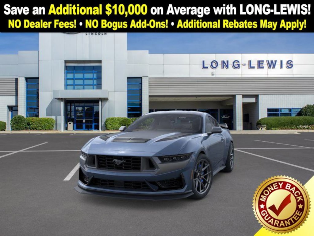 Vapor Blue Metallic 2025 Ford Mustang Dark Horse NFC RWD 10-Speed Automatic 5.0L V8 DOHC 32V 12 Speakers, 4-Wheel Disc Brakes, ABS brakes, Adaptive suspension, Air Conditioning, Alloy wheels, AM/FM radio: SiriusXM with 360L, AM/FM Stereo, Auto High-beam Headlights, Auto-dimming Rear-View mirror, Automatic temperature control, B&O Sound System by Bang & Olufsen, Brake assist, Bumpers: body-color, Cloth/Vinyl Climate-Controlled Bucket Seats, Cloth/Vinyl Heated Bucket Seats, Compass, Dark Horse Appearance Package, Dark Horse Handling Package, Delay-off headlights, Driver door bin, Driver vanity mirror, Dual front impact airbags, Dual front side impact airbags, Electronic Stability Control, Emergency communication system: 911 Assist, Exterior Parking Camera Rear, Four wheel independent suspension, Front anti-roll bar, Front Bucket Seats, Front Center Armrest, Front dual zone A/C, Front reading lights, Front Towing Hooks, Fully automatic headlights, HD Radio, Heated front seats, Heated steering wheel, Illuminated entry, Internet access capable: FordPass Connect, Knee airbag, Low tire pressure warning, Magnetic Damping System, Navigation system: Connected Navigation, Notorious Blue Painted Brake Calipers, Occupant sensing airbag, Outside temperature display, Overhead airbag, Overhead console, Painted Black Roof, Panic alarm, Passenger door bin, Passenger vanity mirror, Performance Front Aero Splitter, Performance Rear Spoiler w/Gurney Flap, Power door mirrors, Power driver seat, Power passenger seat, Power steering, Power windows, Radio data system, Rain sensing wipers, Rear anti-roll bar, Rear Parking Sensors, Rear window defroster, RECARO Micro-Suede/Vinyl Bucket Seats, RECARO Sport Seats, Remote keyless entry, SiriusXM w/360L, Speed control, Speed-sensing steering, Speed-Sensitive Wipers, Split folding rear seat, Spoiler, Sport steering wheel, Steering wheel mounted audio controls, SYNC 4, Tachometer, Telescoping steering wheel, Tilt steering wheel, Traction control, Trip computer, Unique Hood Graphic, Variably intermittent wipers, Voltmeter, Wheels: 19" x 10.5" Fr/19" x 11" Rr Tarnished Alum, Wheels: 19" x 9.5" Fr & 19" x 10" Rr Aluminum.