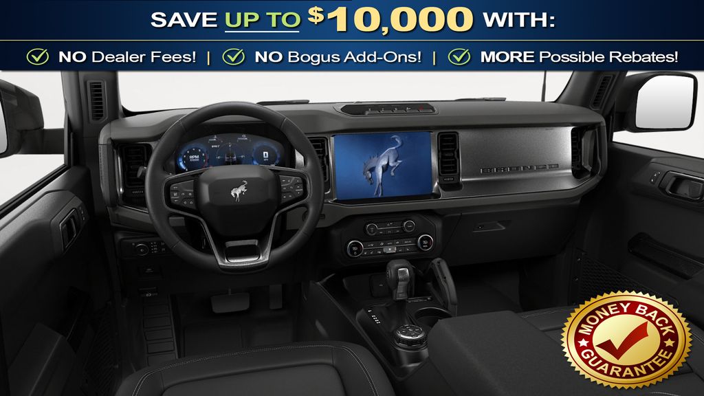 Dealer Discount of $1,857 off MSRP Oxford White 2026 Ford Bronco Outer Banks NFT 4WD 10-Speed Automatic 2.7L EcoBoost V6 18" Bright Machined Aluminum Wheels, 4-Wheel Disc Brakes, 7 Speakers, ABS brakes, Air Conditioning, Alloy wheels, AM/FM radio: SiriusXM with 360L, AM/FM Stereo, Auto High-beam Headlights, Auto-dimming Rear-View mirror, Automatic temperature control, Brake assist, Compass, Connected Navigation, Delay-off headlights, Driver door bin, Driver vanity mirror, Dual front impact airbags, Dual front side impact airbags, Electronic Stability Control, Emergency communication system: 911 Assist, Exterior Parking Camera Rear, Ford Connectivity Package (1-Year Included), Front anti-roll bar, Front Bucket Seats, Front Center Armrest, Front dual zone A/C, Front fog lights, Front License Plate Bracket, Front reading lights, Front wheel independent suspension, Fully automatic headlights, Hard Top Sound Deadening Headliner, Heated door mirrors, Heated front seats, Heated Leather-Trimmed/Vinyl Bucket Seats, Heated steering wheel, High Clearance Fender Flares, High Clearance Suspension, Illuminated entry, Integrated roll-over protection, Leather Shift Knob, Low tire pressure warning, Navigation system: Connected Navigation, Occupant sensing airbag, Outside temperature display, Overhead airbag, Overhead console, Painted Hard Top, Panic alarm, Passenger door bin, Passenger vanity mirror, Position-Sensitive Bilstein Shock Absorbers, Power door mirrors, Power driver seat, Power passenger seat, Power steering, Power windows, Radio data system, Rear seat center armrest, Rear-Window Defroster and Washer, Remote keyless entry, Sasquatch Package, Security system, SiriusXM with 360L, Speed control, Split folding rear seat, Steering wheel mounted audio controls, SYNC 4, Tachometer, Telescoping steering wheel, Tilt steering wheel, Traction control, Trip computer, Variably intermittent wipers, Voltmeter, Wheels: 17" Matte Black Alloy. Price includes: $750 - Retail Bonus Cash. Exp. 04/30/2026 $750 - Retail Customer Cash. Exp. 04/30/2026