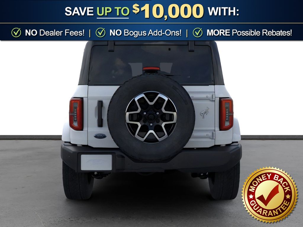 Dealer Discount of $1,212 off MSRP Oxford White 2026 Ford Bronco Outer Banks NFT 4WD 10-Speed Automatic 2.3L EcoBoost I-4 18" Bright Machined Aluminum Wheels, 3.73 Axle Ratio, 4-Wheel Disc Brakes, 7 Speakers, ABS brakes, Air Conditioning, Alloy wheels, AM/FM radio: SiriusXM with 360L, AM/FM Stereo, Auto High-beam Headlights, Auto-dimming Rear-View mirror, Automatic temperature control, Brake assist, Compass, Connected Navigation, Delay-off headlights, Driver door bin, Driver vanity mirror, Dual front impact airbags, Dual front side impact airbags, Electronic Stability Control, Emergency communication system: 911 Assist, Exterior Parking Camera Rear, Ford Connectivity Package (1-Year Included), Front anti-roll bar, Front Bucket Seats, Front Center Armrest, Front dual zone A/C, Front fog lights, Front License Plate Bracket, Front reading lights, Front wheel independent suspension, Fully automatic headlights, Hard Top Sound Deadening Headliner, Heated door mirrors, Heated front seats, Heated Leather-Trimmed/Vinyl Bucket Seats, Heated steering wheel, Illuminated entry, Integrated roll-over protection, Leather Shift Knob, Low tire pressure warning, Navigation system: Connected Navigation, Occupant sensing airbag, Outside temperature display, Overhead airbag, Overhead console, Panic alarm, Passenger door bin, Passenger vanity mirror, Power door mirrors, Power driver seat, Power passenger seat, Power steering, Power windows, Radio data system, Rear seat center armrest, Rear-Window Defroster and Washer, Remote keyless entry, Security system, Shadow Black-Painted Hard Top, SiriusXM with 360L, Speed control, Split folding rear seat, Steering wheel mounted audio controls, SYNC 4, Tachometer, Telescoping steering wheel, Tilt steering wheel, Traction control, Trip computer, Variably intermittent wipers, Voltmeter.