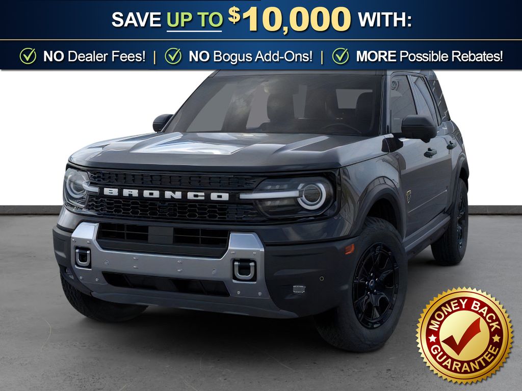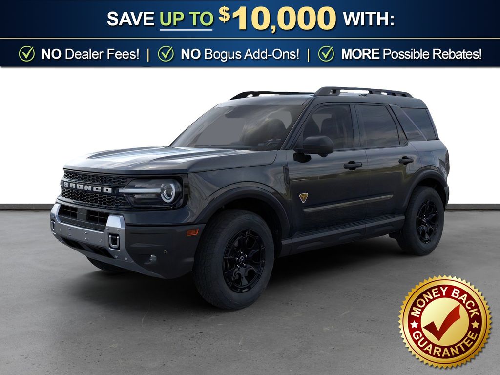 Dealer Discount of $1,525 off MSRP Shadow Black 2026 Ford Bronco Sport Badlands NFT 4WD 8-Speed Automatic EcoBoost 2.0L I4 GTDi DOHC Turbocharged VCT 2 Rear D-Ring Recovery Hooks, 4-Wheel Disc Brakes, 6 Speakers, 850W Engine Cooling Fan, ABS brakes, Air Conditioning, Alloy wheels, AM/FM radio: SiriusXM with 360L, AM/FM Stereo, Apple CarPlay/Android Auto, Auto High-beam Headlights, Auto-dimming Rear-View mirror, Automatic temperature control, Auxiliary Switches and Wiring, Badlands Tech Package, Brake assist, Compass, Connected Navigation (1-Year Included), Delay-off headlights, Driver door bin, Driver vanity mirror, Dual front impact airbags, Dual front side impact airbags, Electronic Stability Control, Emergency communication system: SYNC 4 911 Assist, Exterior Parking Camera Rear, Ford Connectivity Package (1-Year Included), Four wheel independent suspension, Front anti-roll bar, Front Bucket Seats, Front Center Armrest, Front fog lights, Front License Plate Bracket, Front reading lights, Fully automatic headlights, Heated door mirrors, Heated front seats, Heated steering wheel, High Clearance Fender Flares, HOSS 3.0 Off-Road Suspension, Illuminated entry, Internet access capable: 5G Modem - Ford Connectivity Package, Knee airbag, Leather-Trimmed Heated Front Sport Contour Bucket Seats, Low tire pressure warning, Memory seat, Noise Reduction Module, Occupant sensing airbag, Outside temperature display, Overhead airbag, Overhead console, Panic alarm, Passenger door bin, Passenger vanity mirror, Power door mirrors, Power driver seat, Power Moonroof, Power passenger seat, Power steering, Power windows, Radio data system, Radio: HD w/B&O Sound System by Bang & Olufsen, Rear anti-roll bar, Rear Black Bumpers with Steel Plates, Rear reading lights, Rear seat center armrest, Rear window defroster, Rear window wiper, Remote keyless entry, Sasquatch Badlands Package, Security system, SiriusXM with 360L, Speed control, Speed-sensing steering, Speed-Sensitive Wipers, Split folding rear seat, Steering wheel mounted audio controls, SYNC 4 with Enhanced Voice Recognition, Tachometer, Telescoping steering wheel, Tilt steering wheel, Traction control, Trip computer, Variably intermittent wipers, Wheels: 17" Ebony Black-Painted Aluminum, Wheels: 17" Matte Black-Painted Aluminum.