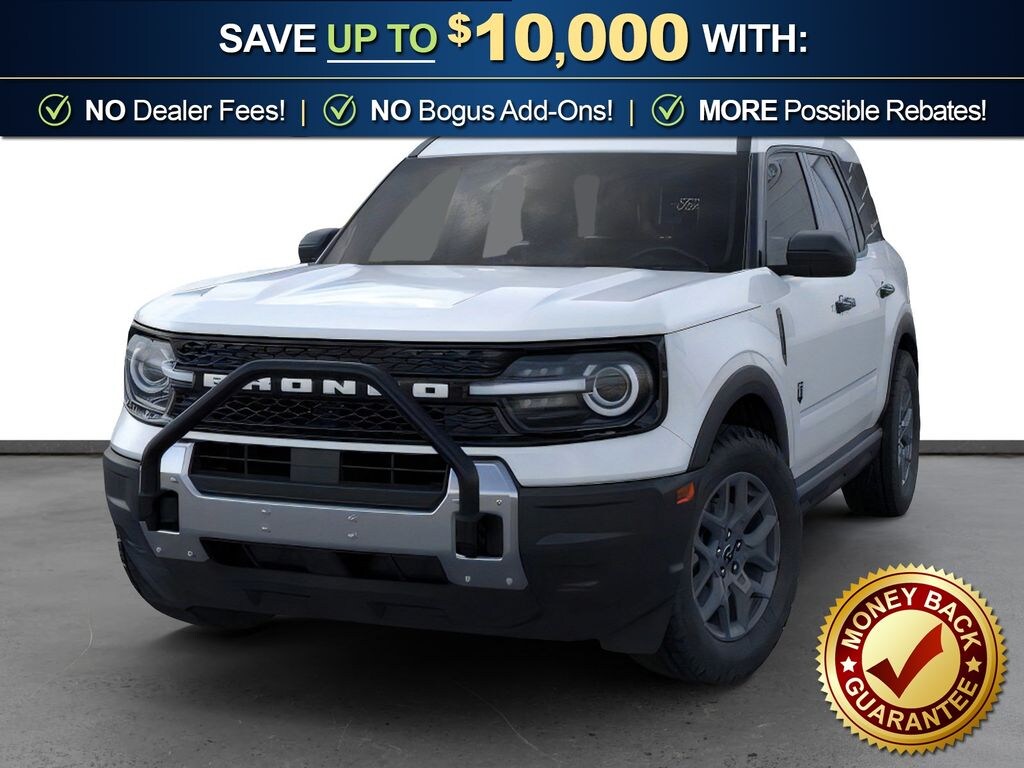 Dealer Discount of $825 off MSRP Space White Metallic 2026 Ford Bronco Sport Big Bend FCT 4WD 8-Speed Automatic 1.5L EcoBoost 4-Wheel Disc Brakes, 400W Pro Power Onboard, 6 Speakers, ABS brakes, Air Conditioning, Alloy wheels, AM/FM radio: SiriusXM with 360L, AM/FM Stereo, Apple CarPlay/Android Auto, Auto High-beam Headlights, Automatic temperature control, Auxiliary Switches and Wiring, Black Diamond Off-Road Package, Brake assist, Class II Trailer Tow Package with Trailer Sway Control, Cloth with Easy-to-Clean Front Bucket Seats, Compass, Delay-off headlights, Driver door bin, Driver vanity mirror, Dual front impact airbags, Dual front side impact airbags, Electronic Stability Control, Emergency communication system: SYNC 4 911 Assist, Exterior Parking Camera Rear, Ford Connectivity Package (1-Year Included), Four wheel independent suspension, Front anti-roll bar, Front Black Molded-in-Color (MIC) Bumper, Front Brush Guard, Front Bucket Seats, Front Center Armrest, Front License Plate Bracket, Front reading lights, Fully automatic headlights, Heated door mirrors, Illuminated entry, Internet access capable: 5G Modem - Ford Connectivity Package, Knee airbag, Low tire pressure warning, Occupant sensing airbag, Outside temperature display, Overhead airbag, Overhead console, Panic alarm, Passenger door bin, Passenger vanity mirror, Power door mirrors, Power steering, Power windows, Radio data system, Rear anti-roll bar, Rear Parking Sensors, Rear reading lights, Rear seat center armrest, Rear window defroster, Rear window wiper, Remote keyless entry, Security system, SiriusXM with 360L, Speed control, Speed-sensing steering, Speed-Sensitive Wipers, Split folding rear seat, Steering wheel mounted audio controls, SYNC 4 with Enhanced Voice Recognition, Tachometer, Telescoping steering wheel, Tilt steering wheel, Traction control, Trip computer, Variably intermittent wipers, Wheels: 17" Carbonized Gray Painted Aluminum, Wheels: 17" Carbonized Gray-Painted Aluminum.