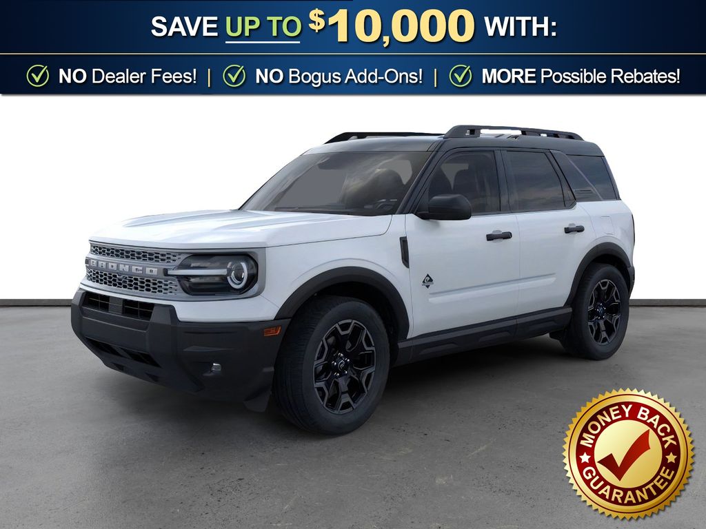 Dealer Discount of $1,145 off MSRP Priced below KBB Fair Purchase Price! Space White Metallic 2026 Ford Bronco Sport Outer Banks NFT 4WD 8-Speed Automatic 1.5L EcoBoost 4-Wheel Disc Brakes, 6 Speakers, ABS brakes, Air Conditioning, Alloy wheels, AM/FM radio: SiriusXM with 360L, AM/FM Stereo, Apple CarPlay/Android Auto, Auto High-beam Headlights, Auto-dimming Rear-View mirror, Automatic temperature control, Brake assist, Compass, Delay-off headlights, Driver door bin, Driver vanity mirror, Dual front impact airbags, Dual front side impact airbags, Electronic Stability Control, Emergency communication system: SYNC 4 911 Assist, Exterior Parking Camera Rear, Ford Connectivity Package (1-Year Included), Four wheel independent suspension, Front anti-roll bar, Front Bucket Seats, Front Center Armrest, Front Driver/Passenger Seat Back Map Pockets, Front dual zone A/C, Front fog lights, Front License Plate Bracket, Front reading lights, Fully automatic headlights, Heated door mirrors, Heated front seats, Heated steering wheel, Illuminated entry, Internet access capable: 5G Modem - Ford Connectivity Package, Knee airbag, Low tire pressure warning, Memory seat, Occupant sensing airbag, Outside temperature display, Overhead airbag, Overhead console, Panic alarm, Passenger door bin, Passenger vanity mirror, Power door mirrors, Power driver seat, Power passenger seat, Power steering, Power windows, Radio data system, Rear anti-roll bar, Rear Parking Sensors, Rear reading lights, Rear seat center armrest, Rear window defroster, Rear window wiper, Remote keyless entry, Security system, SiriusXM with 360L, Speed control, Speed-sensing steering, Speed-Sensitive Wipers, Split folding rear seat, Steering wheel mounted audio controls, SYNC 4 with Enhanced Voice Recognition, Tachometer, Telescoping steering wheel, Tilt steering wheel, Traction control, Trip computer, Variably intermittent wipers, Wheels: 18" Ebony Black.