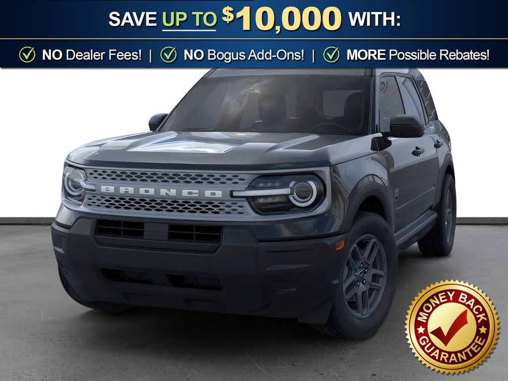 Shadow Black 2026 Ford Bronco Sport Big Bend NFT 4WD 8-Speed Automatic 1.5L EcoBoost 4-Wheel Disc Brakes, 6 Speakers, ABS brakes, Air Conditioning, Alloy wheels, AM/FM radio: SiriusXM with 360L, AM/FM Stereo, Apple CarPlay/Android Auto, Auto High-beam Headlights, Automatic temperature control, Brake assist, Cloth with Easy-to-Clean Front Bucket Seats, Compass, Delay-off headlights, Driver door bin, Driver vanity mirror, Dual front impact airbags, Dual front side impact airbags, Electronic Stability Control, Emergency communication system: SYNC 4 911 Assist, Exterior Parking Camera Rear, Ford Connectivity Package (1-Year Included), Four wheel independent suspension, Front anti-roll bar, Front Bucket Seats, Front Center Armrest, Front reading lights, Fully automatic headlights, Heated door mirrors, Illuminated entry, Internet access capable: 5G Modem - Ford Connectivity Package, Knee airbag, Low tire pressure warning, Occupant sensing airbag, Outside temperature display, Overhead airbag, Overhead console, Panic alarm, Passenger door bin, Passenger vanity mirror, Power door mirrors, Power steering, Power windows, Radio data system, Rear anti-roll bar, Rear Parking Sensors, Rear reading lights, Rear seat center armrest, Rear window defroster, Rear window wiper, Remote keyless entry, Security system, SiriusXM with 360L, Speed control, Speed-sensing steering, Speed-Sensitive Wipers, Split folding rear seat, Steering wheel mounted audio controls, SYNC 4 with Enhanced Voice Recognition, Tachometer, Telescoping steering wheel, Tilt steering wheel, Traction control, Trip computer, Variably intermittent wipers, Wheels: 17" Carbonized Gray Painted Aluminum.