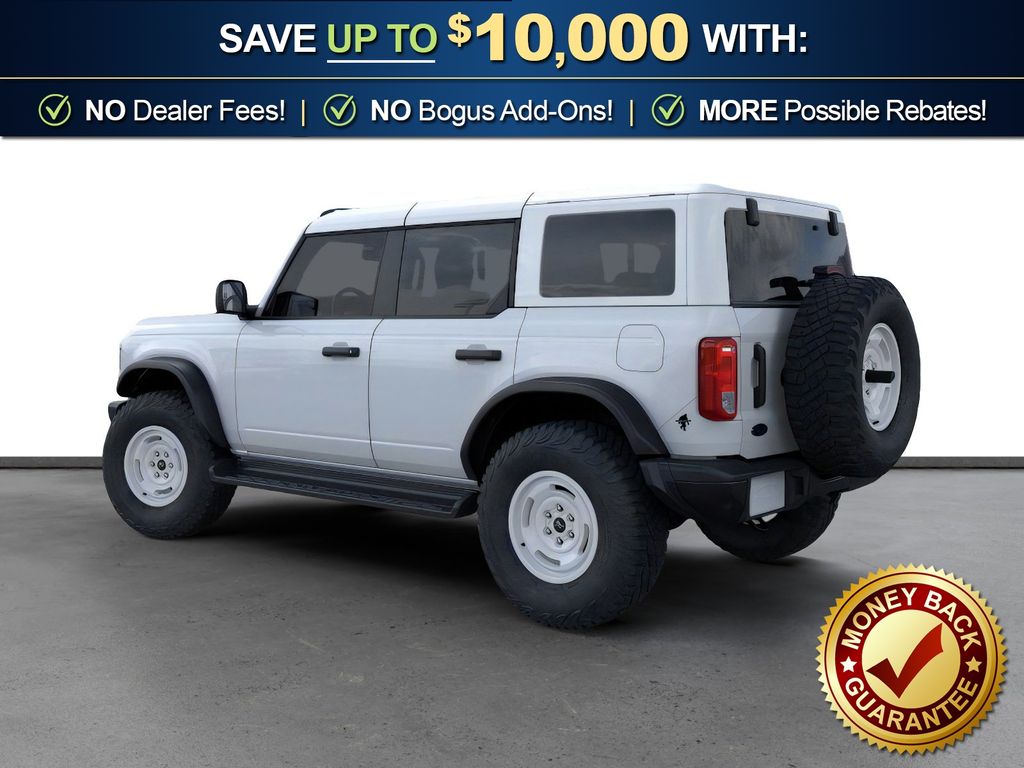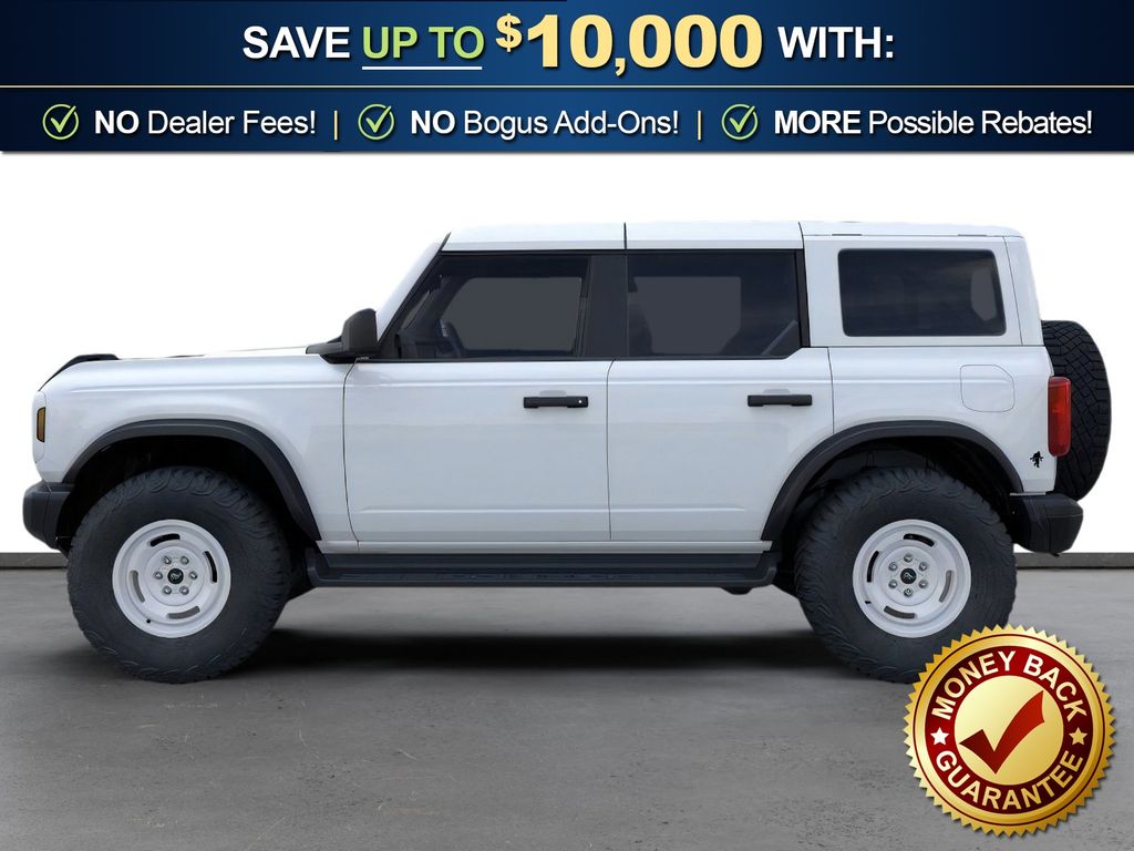 Dealer Discount of $910 off MSRP Oxford White 2026 Ford Bronco Heritage Edition NFT 4WD 10-Speed Automatic 2.7L EcoBoost V6 4-Wheel Disc Brakes, 7 Speakers, ABS brakes, Air Conditioning, Alloy wheels, AM/FM radio: SiriusXM with 360L, AM/FM Stereo, Auto High-beam Headlights, Auto-dimming Rear-View mirror, Automatic temperature control, Brake assist, Compass, Connected Navigation, Convertible HardTop, Convertible roof lining, Delay-off headlights, Driver door bin, Driver vanity mirror, Dual front impact airbags, Dual front side impact airbags, Electronic Stability Control, Emergency communication system: 911 Assist, Exterior Parking Camera Rear, Ford Connectivity Package (1-Year Included), Front anti-roll bar, Front Bucket Seats, Front Center Armrest, Front dual zone A/C, Front fog lights, Front License Plate Bracket, Front reading lights, Front wheel independent suspension, Fully automatic headlights, Glass rear window, Heated door mirrors, Heated front seats, Heated steering wheel, Illuminated entry, Integrated roll-over protection, Low tire pressure warning, Navigation system: Connected Navigation, Occupant sensing airbag, Outside temperature display, Overhead airbag, Overhead console, Panic alarm, Passenger door bin, Passenger vanity mirror, Plaid Cloth Front Heated Bucket Seats, Power door mirrors, Power steering, Power windows, Radio data system, Rear window defroster, Rear window wiper, Remote keyless entry, Security system, SiriusXM with 360L, Speed control, Split folding rear seat, Steering wheel mounted audio controls, SYNC 4, Tachometer, Telescoping steering wheel, Tilt steering wheel, Traction control, Trip computer, Variably intermittent wipers, Wheels: 17" Unique White.