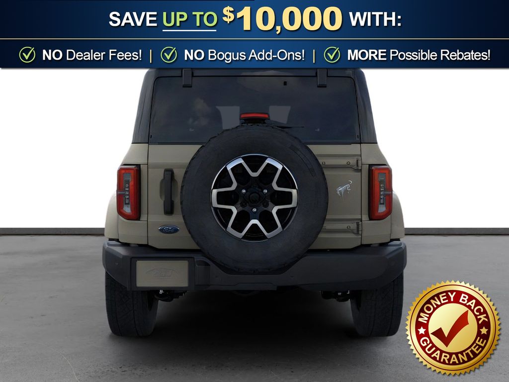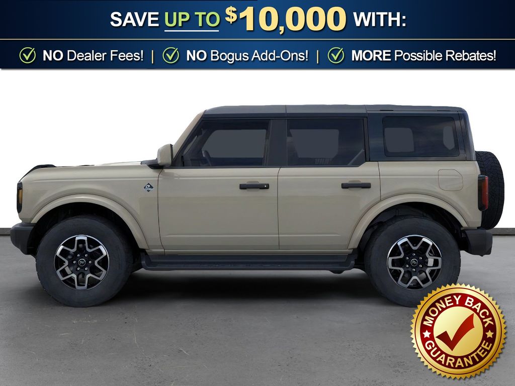 Desert Sand 2026 Ford Bronco Outer Banks NFT 4WD 10-Speed Automatic 2.3L EcoBoost I-4 18" Bright Machined Aluminum Wheels, 3.73 Axle Ratio, 4-Wheel Disc Brakes, 7 Speakers, ABS brakes, Air Conditioning, Alloy wheels, AM/FM radio: SiriusXM with 360L, AM/FM Stereo, Auto High-beam Headlights, Auto-dimming Rear-View mirror, Automatic temperature control, Brake assist, Compass, Connected Navigation, Delay-off headlights, Driver door bin, Driver vanity mirror, Dual front impact airbags, Dual front side impact airbags, Electronic Stability Control, Emergency communication system: 911 Assist, Exterior Parking Camera Rear, Ford Connectivity Package (1-Year Included), Front anti-roll bar, Front Bucket Seats, Front Center Armrest, Front dual zone A/C, Front fog lights, Front License Plate Bracket, Front reading lights, Front wheel independent suspension, Fully automatic headlights, Hard Top Sound Deadening Headliner, Heated door mirrors, Heated front seats, Heated Leather-Trimmed/Vinyl Bucket Seats, Heated steering wheel, Illuminated entry, Integrated roll-over protection, Leather Shift Knob, Low tire pressure warning, Navigation system: Connected Navigation, Occupant sensing airbag, Outside temperature display, Overhead airbag, Overhead console, Panic alarm, Passenger door bin, Passenger vanity mirror, Power door mirrors, Power driver seat, Power passenger seat, Power steering, Power windows, Radio data system, Rear seat center armrest, Rear-Window Defroster and Washer, Remote keyless entry, Security system, Shadow Black-Painted Hard Top, SiriusXM with 360L, Speed control, Split folding rear seat, Steering wheel mounted audio controls, SYNC 4, Tachometer, Telescoping steering wheel, Tilt steering wheel, Traction control, Trip computer, Variably intermittent wipers, Voltmeter.
